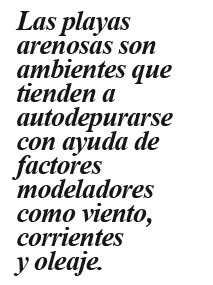 Las playas arenosas son ambientes que tienden a autodepurarse con ayuda de factores modeladores como viento, corrientes y oleaje; sin embargo, en el litoral de Veracruz-Boca del Río la presencia de estructuras de protección costera (muros de contención o escolleras) disipan la energía, permitiendo que se incorporen materiales finos en los sedimentos que incrementan el porcentaje de lodos y favorecen los procesos de contaminación.