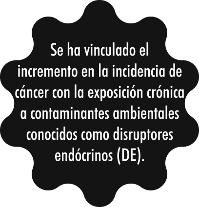 Dentro de los factores de riesgos para el padecimiento de esta enfermedad se encuentran: un índice de masa corporal elevado, mala alimentación, inactividad física, consumo de alcohol y tabaco, así como la exposición a ciertas sustancias químicas; respecto a este último, en años recientes se ha vinculado el incremento en la incidencia de cáncer con la exposición crónica a contaminantes ambientales conocidos como disruptores endócrinos (DE).
