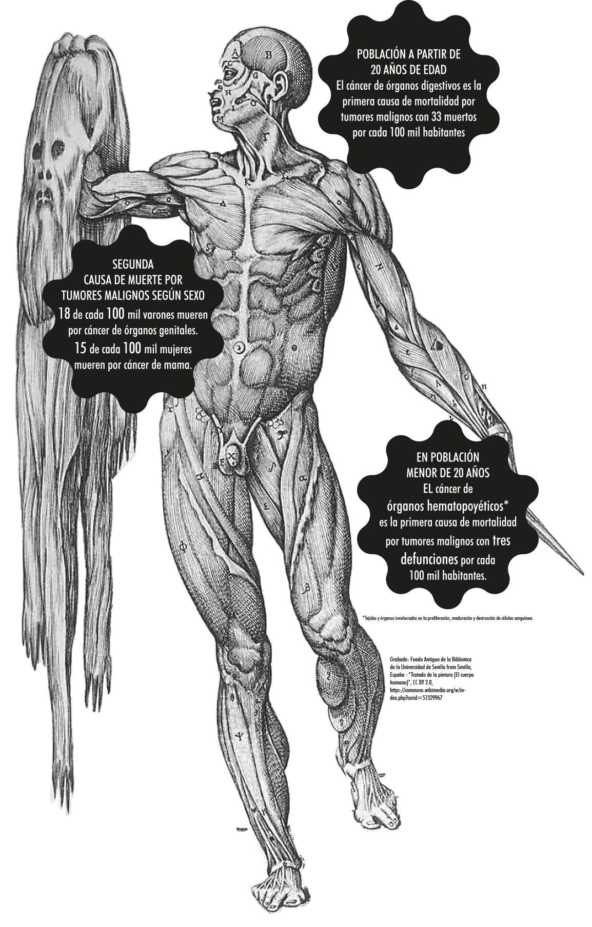 En lo que toca a nuestro país, el primero de febrero de 2017 el Instituto Nacional de Estadística, Geografía e Informática publicó un perfil sobre morbilidad en el que se observa que en 2014 el cáncer en órganos hematopoyéticos (médula ósea y bazo) tuvo mayor presencia en mujeres (61.1%) que en hombres (59.2%) en la población menor a 20 años. En la población mayor a 20 años, en varones, dos de cada 10 casos se deben a tumores malignos en órganos digestivos (boca, esófago, estómago y colon), mientras que tres de cada 10 mujeres con cáncer padecen tumores malignos de mama; hemos enunciado así las principales neoplasias malignas para cada sexo dentro de la población adulta en México, que son seguidas por el cáncer en órganos genitales (11.4% en hombres y 17% mujeres).