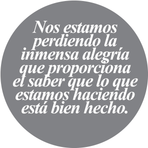Pero, ¿eso es todo? ¿Y la calidad de lo que hacemos? ¿Realmente es prudente olvidar la calidad de lo que hacemos? No, de ninguna manera. Para comenzar, nos perdemos la inmensa alegría que proporciona el saber que lo que estamos haciendo está bien hecho. Que somos competitivos y que podemos participar en editoriales extranjeras de mucho prestigio, por ejemplo. Que los alumnos en cuya formación participamos son ahora profesionistas exitosos y útiles. Que podemos brillar en cualquier lugar.