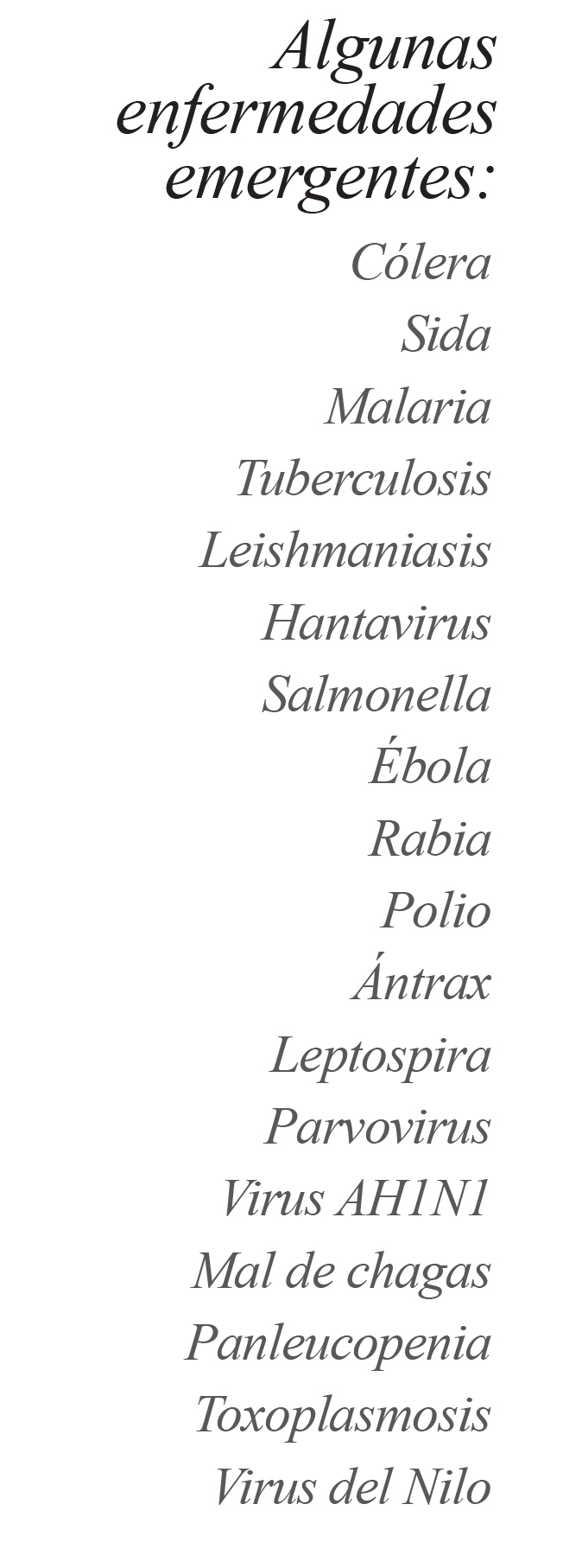 “Salvo excepciones, esos patógenos se mantienen en su hospedero sin llevarlo a la extinción para asegurar también su propia sobrevivencia. Muchos de los parásitos que han provocado pandemias mundiales eran prácticamente inofensivos para los animales salvajes, pero no para el hombre; otros, se transformaron al entrar en contacto con nuevas especies”.