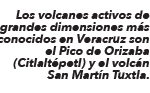A lo largo del Cinturón Volcánico Mexicano hay miles de volcanes, y en Veracruz existen cientos de ellos de diferentes tipos. Los volcanes activos de grandes dimensiones más conocidos en Veracruz son el Pico de Orizaba (Citlaltépetl) y el volcán San Martín Tuxtla. Aunque los dos son poligenéticos, es decir, volcanes que han tenido diferentes fases de actividad a lo largo del tiempo, muestran características muy diferentes.