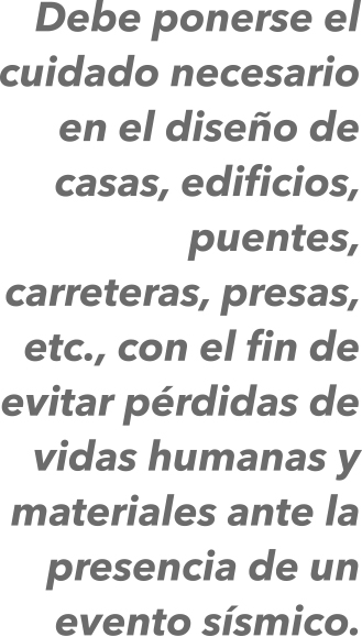 Es evidente que la mayoría de los países en el mundo se ve amenazada por la actividad sísmica del planeta, dado que ésta puede afectar gravemente su población e infraestructura. Es sabido que eventos sísmicos de gran magnitud pueden generar elevadas intensidades de movimiento del suelo y provocar daños significativos o el colapso, ya sea total o parcial, de edificaciones. Por ello es necesario poner énfasis y cuidado en el diseño de los distintos tipos de obras civiles (casas, edificios, puentes, carreteras, presas, etc.), con el fin de evitar, en la medida de lo posible, pérdidas de vidas humanas y materiales ante la presencia de un evento sísmico.