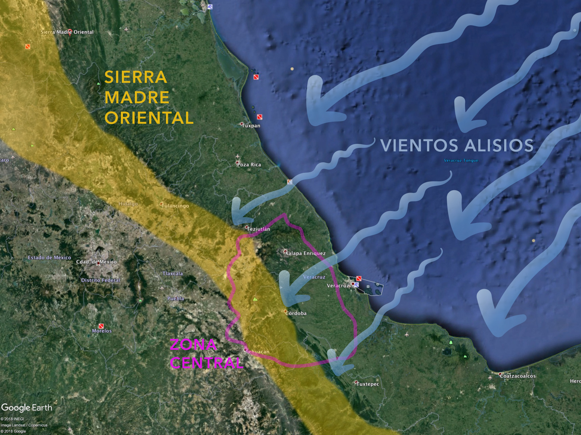 La conjunción de diversas características como su cercanía al mar, una topografía compleja, la presencia de ciclones tropicales, frentes fríos y vientos alisios, convierte a la región central de nuestro estado en un laboratorio natural para explorar el acoplamiento entre la atmósfera y la superficie.