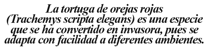 La liberación de T. scripta elegans en el medio natural constituye una de las más grandes amenazas, dado que su presencia interfiere en el comportamiento de otras tortugas acuáticas nativas, siendo portadoras de enfermedades e impidiéndoles el descanso, la reproducción y el anidamiento. Por esta razón, la Unión Internacional para la Conservación de la Naturaleza la considera dentro de la lista de las 100 especies exóticas invasoras más dañinas del mundo y su comercio e importación están prohibidos en algunos países europeos; desafortunadamente, en México se sigue vendiendo no sólo ésta sino otras especies de tortugas sin considerar los riesgos económicos-sociales, de salud y ecológicos que ello conlleva.