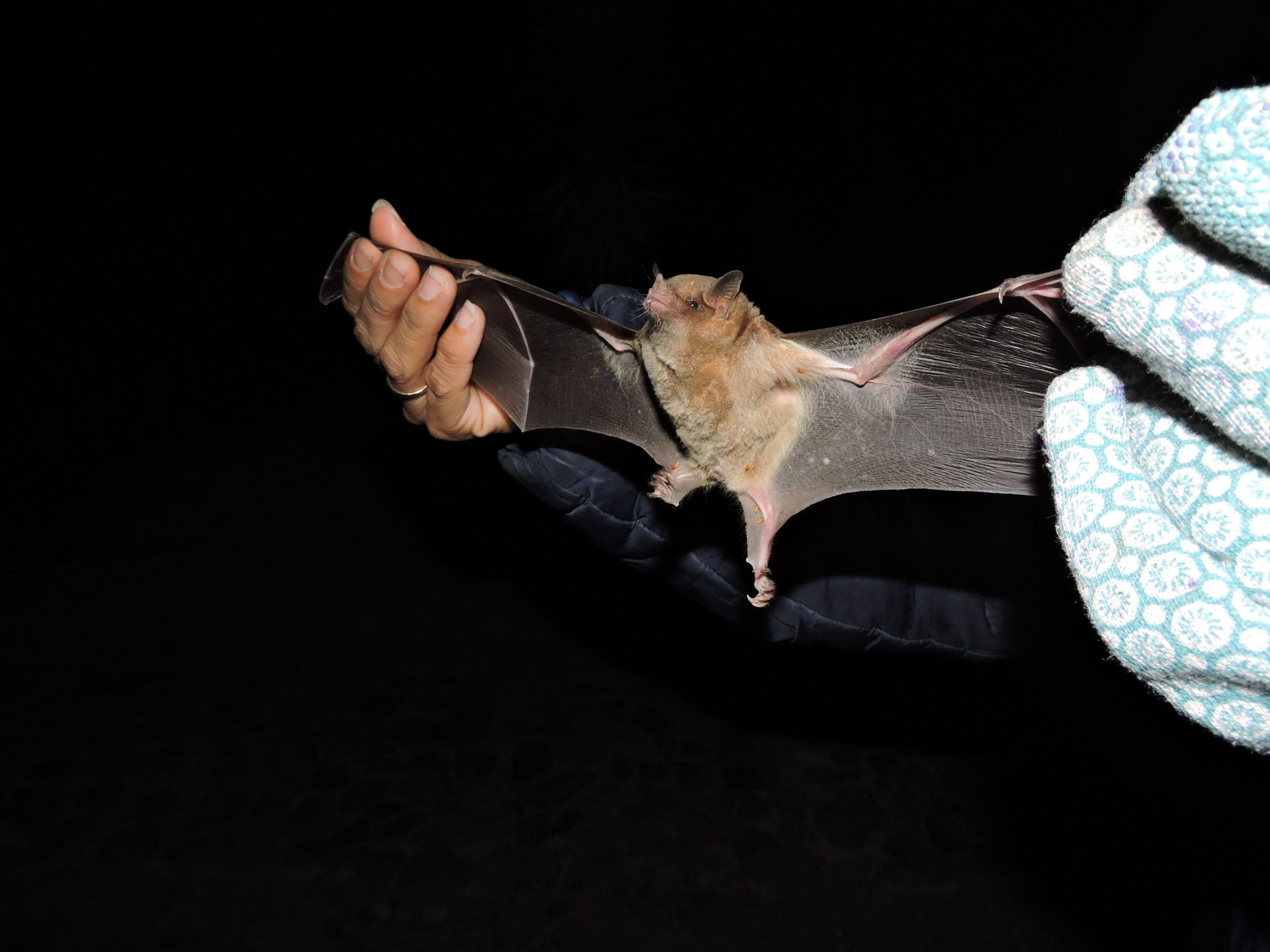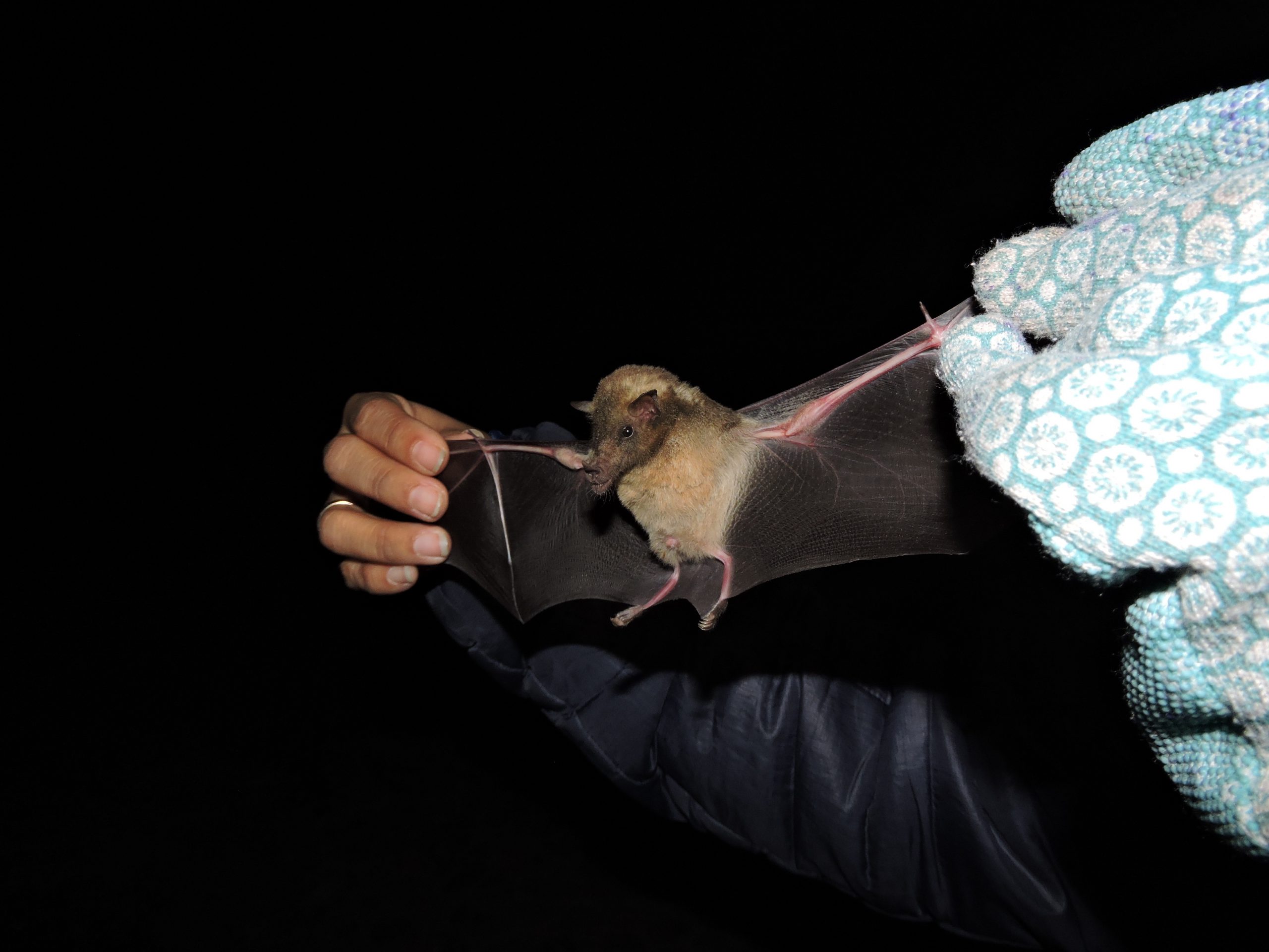 Dra. María Cristina Mac Swiney González y Rocío S. Castillo M. con un murciélago nectarívoro en Hidalgo, Pachuca.