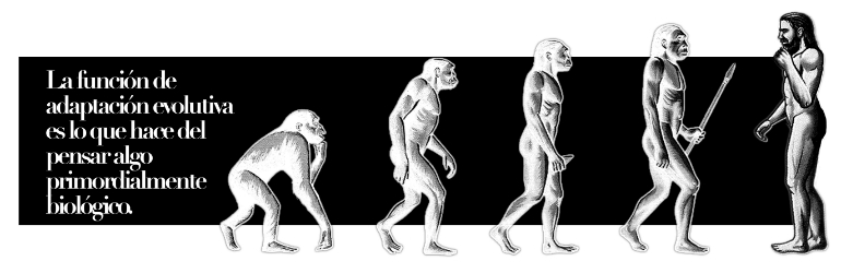 La función de adaptación evolutiva es lo que hace del pensar algo primordialmente biológico. Aunque pensar -como proceso y como producto-, es mucho más complejo de estudiar, puede compararse con el respirar o el comer: así como pensar es pensar acerca de algo o de alguien, existente o inexistente, bueno o malo, bello o detestable, justo o injusto, así también el respirar o el comer consisten en respirar o comer algo: oxígeno y alimentos, o venenos en la atmósfera y en los alimentos; y así como el respirar y el comer termina afectando lo que somos y podemos llegar a ser, el pensar afecta -me parece que de manera aún más determinante- lo que podemos llegar o impedirnos llegar a ser, tanto en términos individuales como colectivos, esto es, políticos.