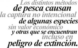 Para llevar a nuestra mesa el pescado que consumimos se pescan de manera no intencional (captura incidental) diversas especies, algunas sin valor económico y otras incluso que se encuentran en peligro de extinción. Aproximadamente siete millones de toneladas de peces y mariscos son accidentalmente capturadas y desechadas. A nivel mundial unos 300 mil mamíferos marinos como ballenas, delfines y marsopas mueren cada año atrapados en redes, de la misma forma que 300 mil aves marinas y 250 mil tortugas.