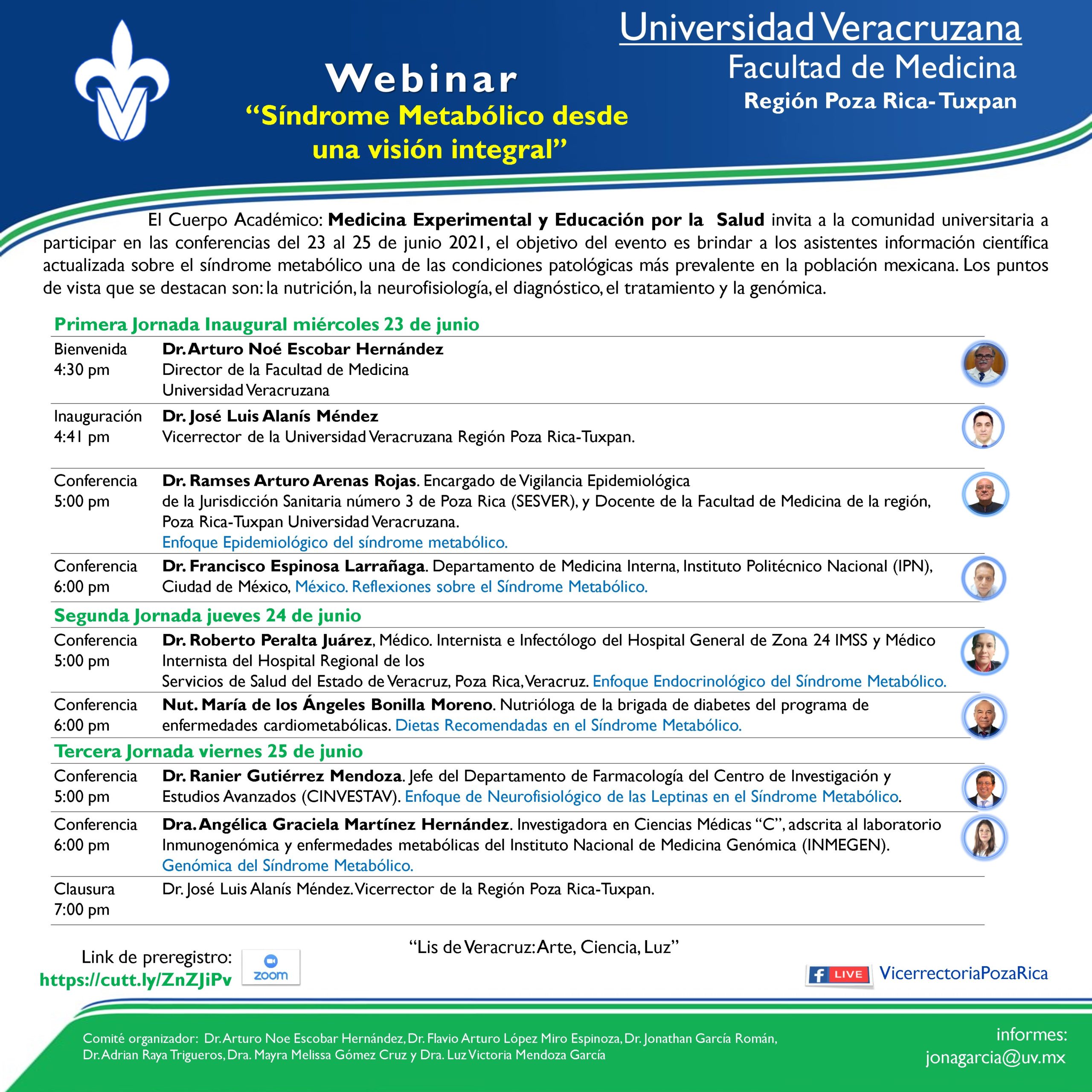El evento virtual será transmitido desde la Sala de videoconferencias USBI- Poza Rica y está dirigido a la comunidad universitaria interesada en información científica actualizada sobre el síndrome metabólico, una de las condiciones patológicas más prevalentes en la población mexicana.