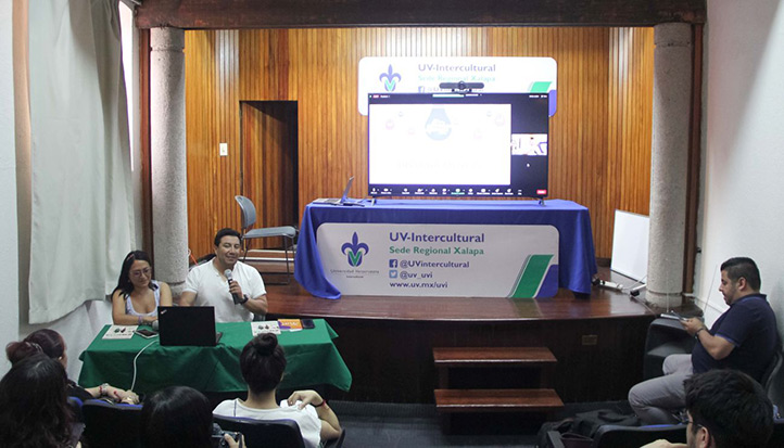 07/03/2024, Xalapa, Ver.- No existe una definición absoluta para la divulgación científica y sus acercamientos no son los mismos en México, Argentina o Colombia, dada la enorme variedad de modismos, señalaron Alma Pinillo Flores y Alejandro Romero, ingeniera ambiental y licenciado en Arte Dramático, respectivamente, durante la charla “Aprende, vulnérate y divulga ciencia”, ofrecida en el auditorio de la Universidad Veracruzana Intercultural sede Xalapa.