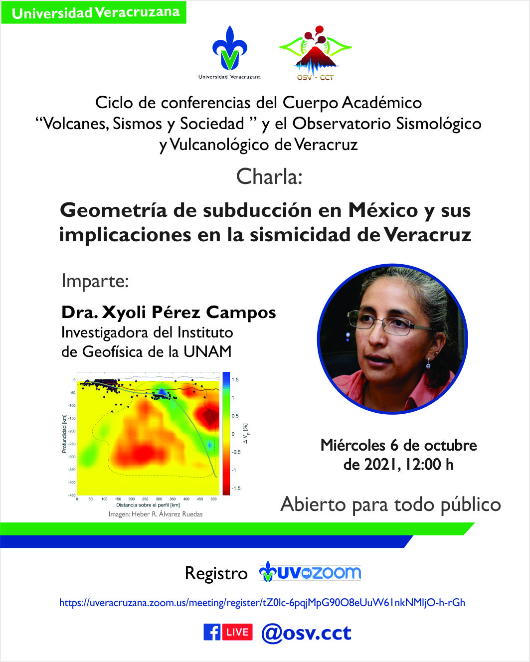 El Centro de Investigaciones de la Tierra lo invita a participar en la plática que impartirá la Dra. Xyoli Pérez Campos, investigadora del Instituto de Geofísica de la UNAM el próximo 6 de octubre en el marco del ciclo de Seminarios del OS V y el Cuerpo Académico » V olcanes, sismos y sociedad».