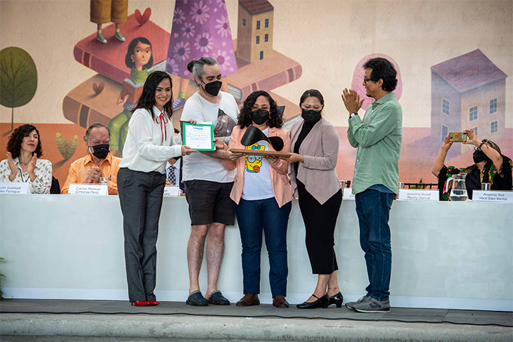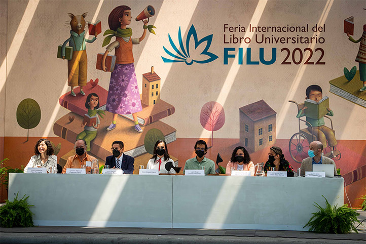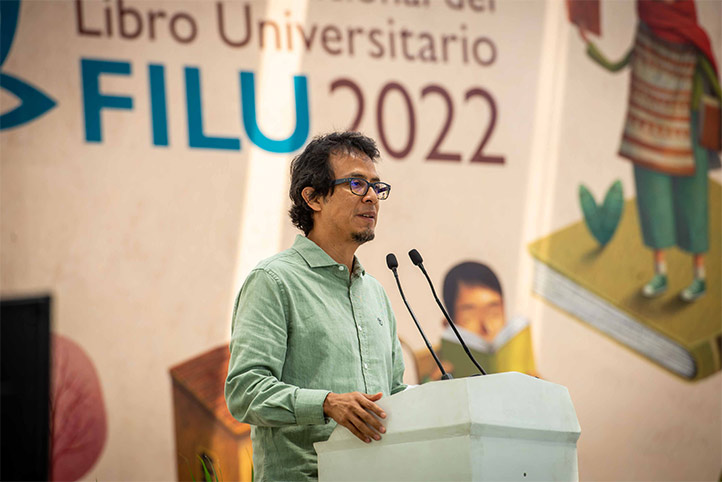 En el presídium estuvo presentes: Judith Guadalupe Páez Paniagua, coordinadora general de la FILU 2022, y el divulgador científico chileno Andrés Simón Gomberoff Selowsky, quien al término de la premiación impartió la conferencia magistral “La música del cosmos”.