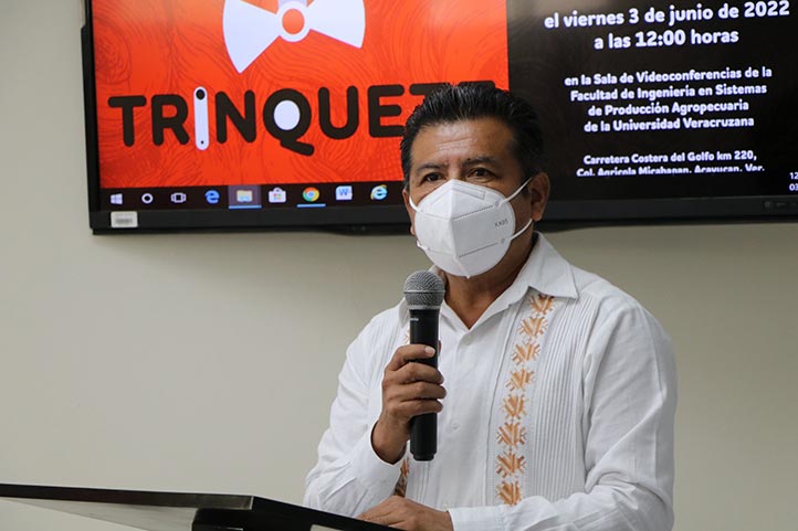 07/06/2022, Acayucan, Ver.- La Universidad Veracruzana (UV) –a través de la Dirección de Comunicación de la Ciencia (DCC), adscrita a la Dirección General de Difusión Cultural, y del Departamento de Medios Audiovisuales (Tele UV), dependiente de la Dirección General de Comunicación Universitaria– presentó la producción de divulgación científica Trinquete, el pasado 3 de junio en la Facultad de Ingeniería en Sistemas de Producción Agropecuaria (FISPA).