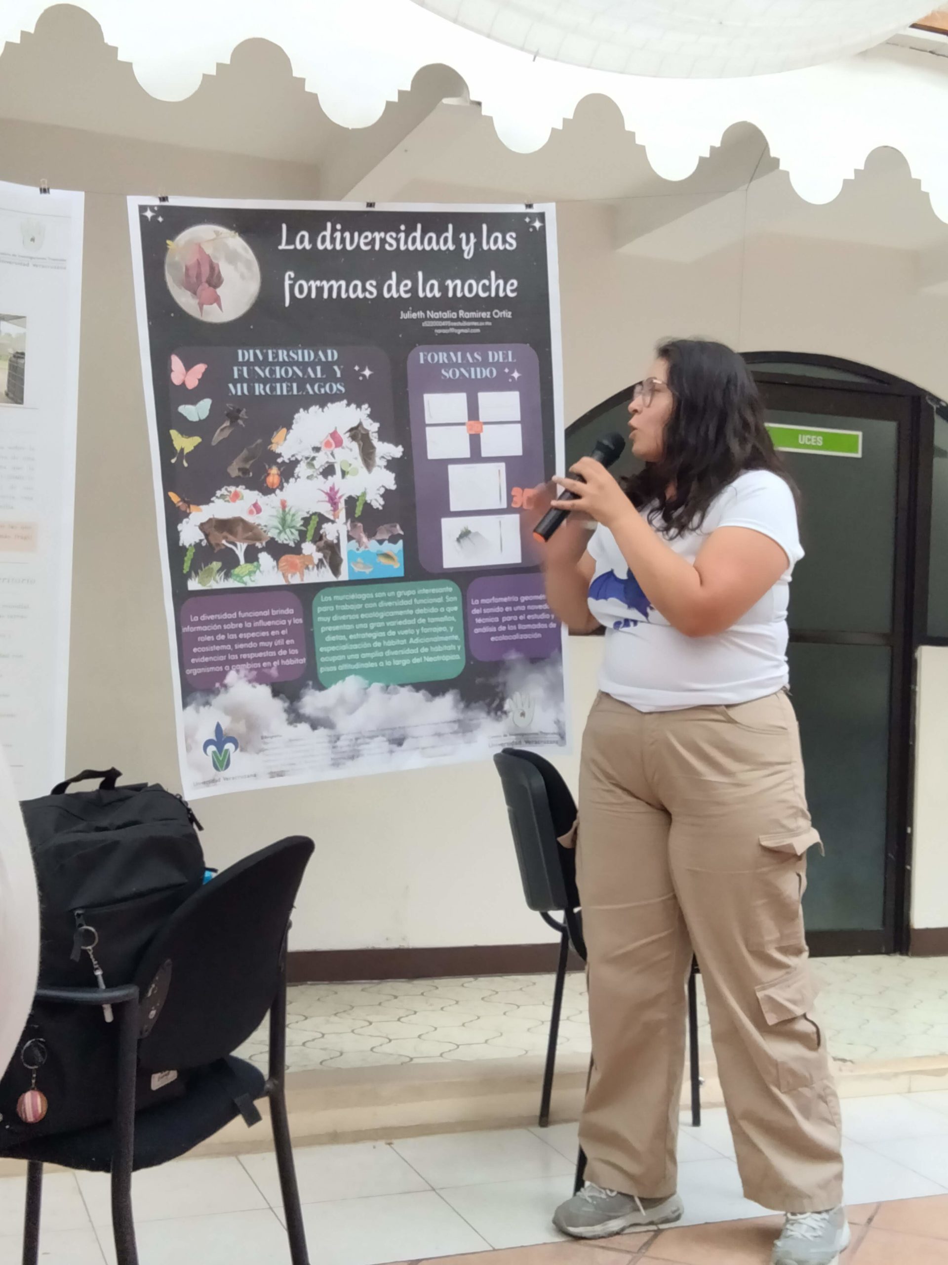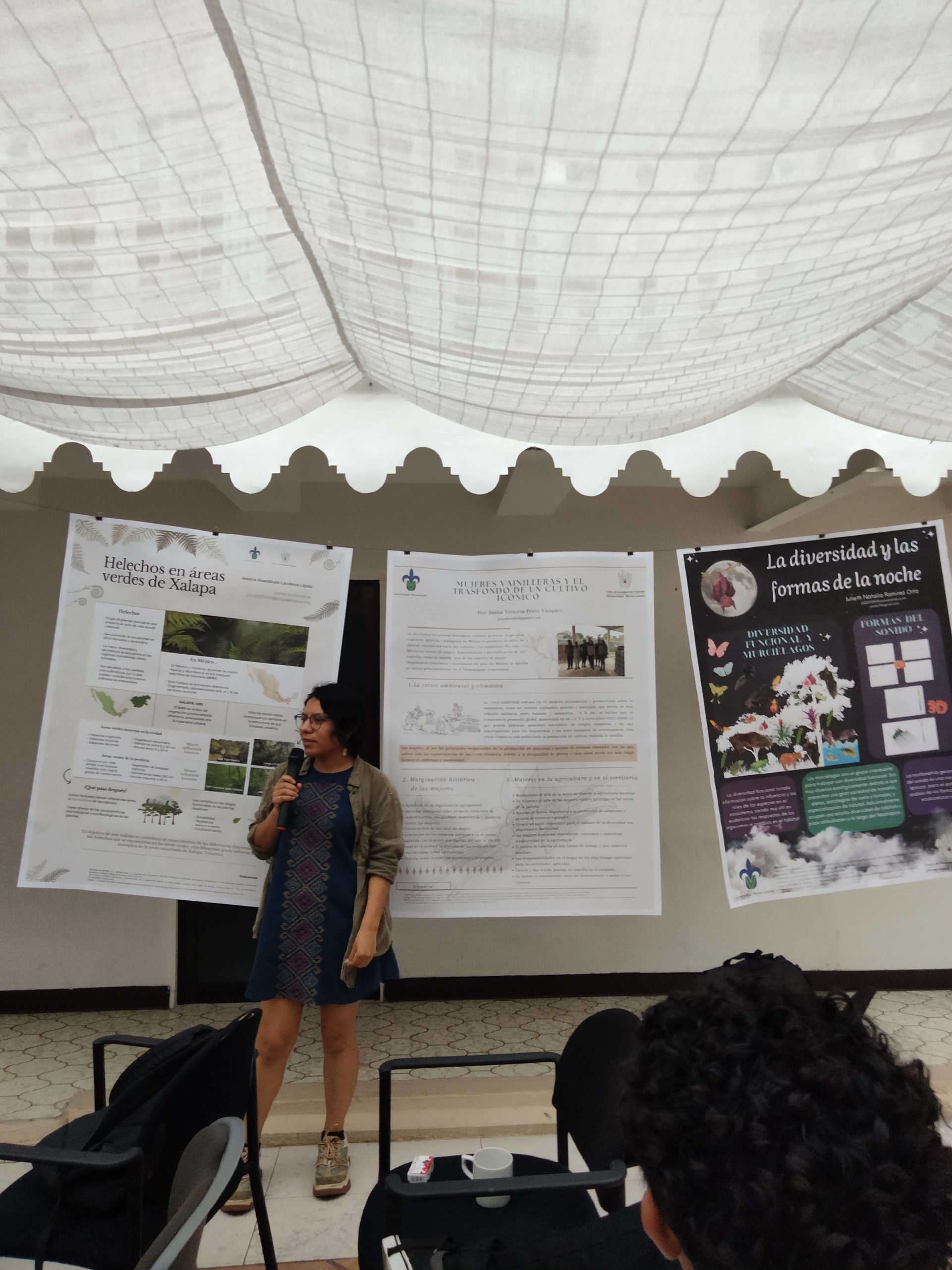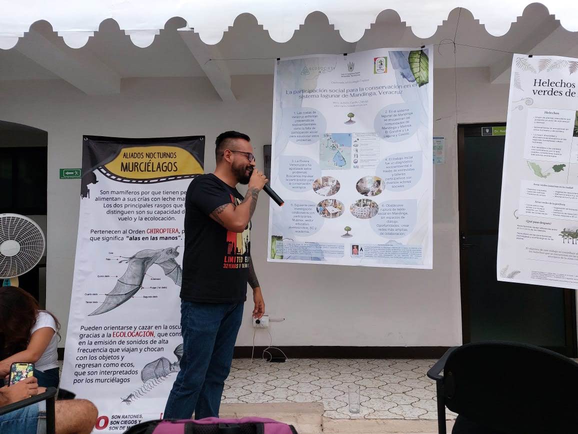 El primer bloque estuvo constituido por las presentaciones orales enfatizando las experiencias en campo: los retos, facilidades, dificultades y aprendizajes que los estudiantes han generado en las zonas de estudio. Participaron los alumnos de Maestría Luis Ángel Rosales Lara (Zongolica Herbarium: el cerro del Acontécatl), Mauricio Javier Mezhua Velázquez (Retos en el fototrampeo de mamíferos), Luis David Pérez Gracida (¿Un perro de agua?), Eire Ramírez García (Tesoros escondidos en los bosques de niebla de México) y Jaime Francisco Camelo Vidal (Los manglares: entre el calor y los mosquitos), así Sandra Milena Ospina Garcés (Conociendo a los murciélagos pescadores), posdoctorante en el CITRO.