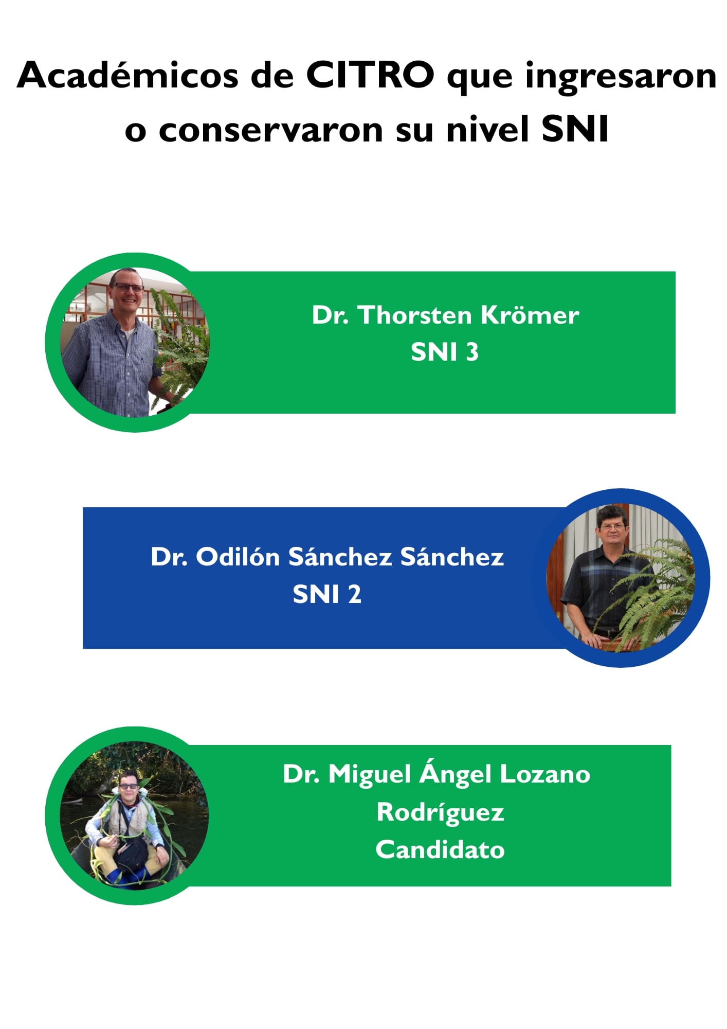 05/08/2025, Xalapa, Ver. El Centro de Investigaciones Tropicales felicita a los académicos el Dr. Thorsten Krömer y el Dr. Odilón Manuel Sánchez Sánchez que participaron en la convocatoria SNI 2025 y fueron ratificados en su nivel y al Dr. quien ingresa como nuevo miembro SNI.