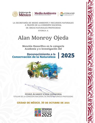 Alan Monroy Ojeda, alumno de doctorado del Citro, fue reconocido por la Semarnat por sus contribuciones a la preservación de especies en peligro de extinción