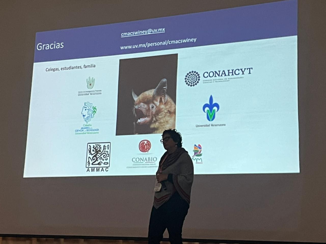 La Dra. Mac Swiney presentó la ponencia magistral «Los llamados de murciélagos en Latinoamérica: avances y perspectivas”. En esta charla presentó una revisión de los países que cuentan con investigación acústica en Latinoamérica y se compartieron los avances en áreas de monitoreo e investigación experimental sobre la acústica de murciélagos. Asimismo, esta charla versó sobre el proyecto Sonozotz, un esfuerzo nacional para la creación de una biblioteca de llamados de ecolocalización de murciélagos en México.