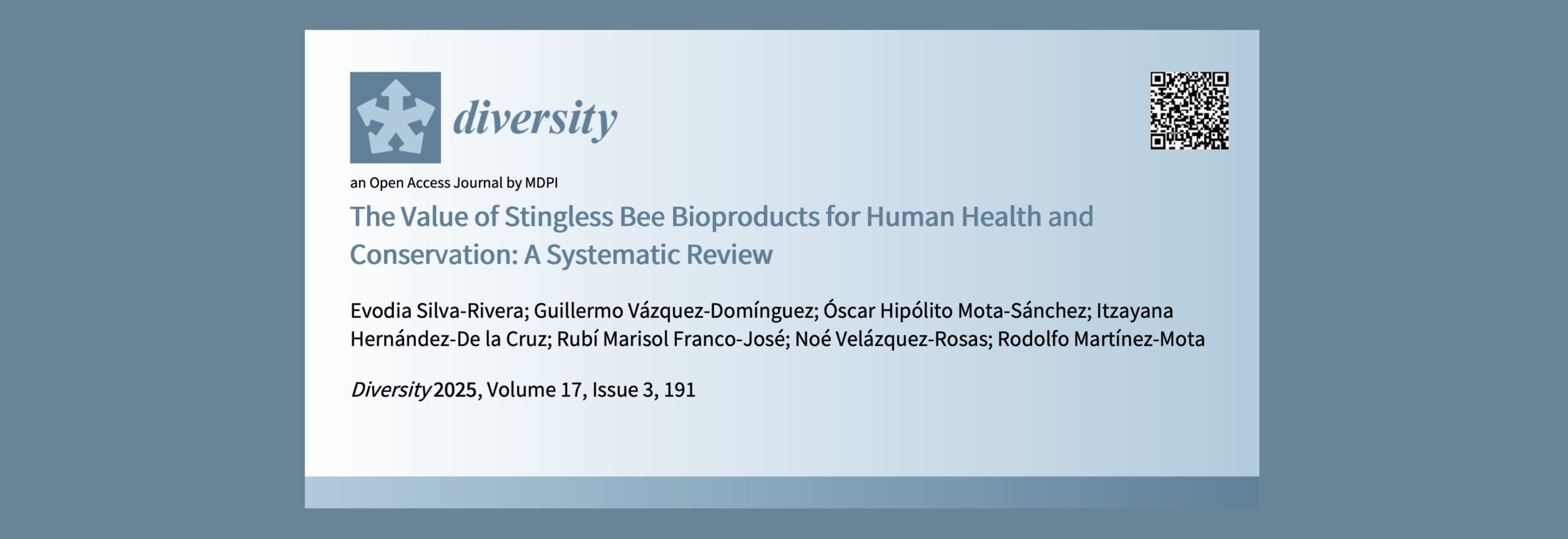 07/03/2025, Xalapa, Ver. Como parte de los productos del proyecto Ciencia de Frontera 2023-G-559 (SECIHTI), investigadores del Citro publican en la revista Diversity el artículo titulado: The Value of Stingless Bee Bioproducts for Human Health and Conservation: A Systematic Review