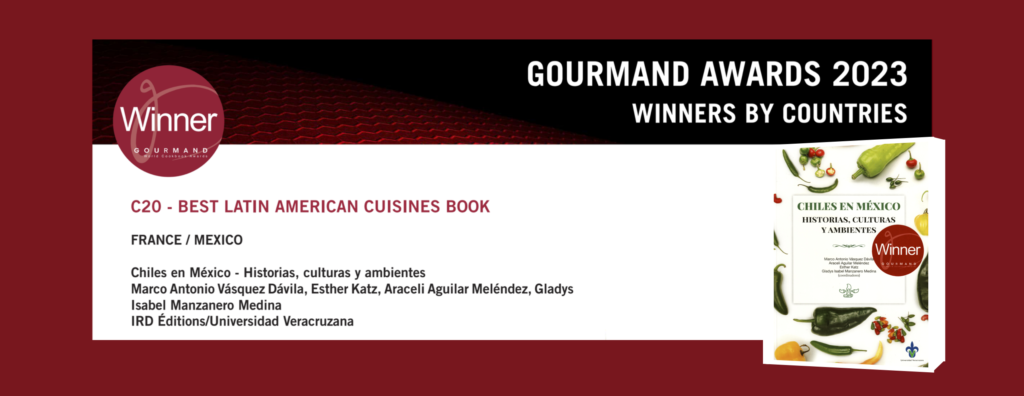 Cabe mencionar que el libro “Los chiles que le dan sabor al mundo: contribuciones multidisciplinarias”, publicado por la Universidad Veracruzana (UV) y el Instituto de Investigación para el Desarrollo (IRD, por sus siglas en francés) France Éditions en 2019 y que antecede al libro comentado en esta nota también fue premiado en los Gourmand World Cookbook Awards 2020, en las categorías de Editoriales Universitarias y de Especias.