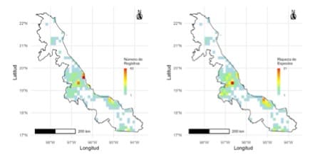 - Mapas de densidad de registros y riqueza de especies de plantas endémicas de Veracruz.