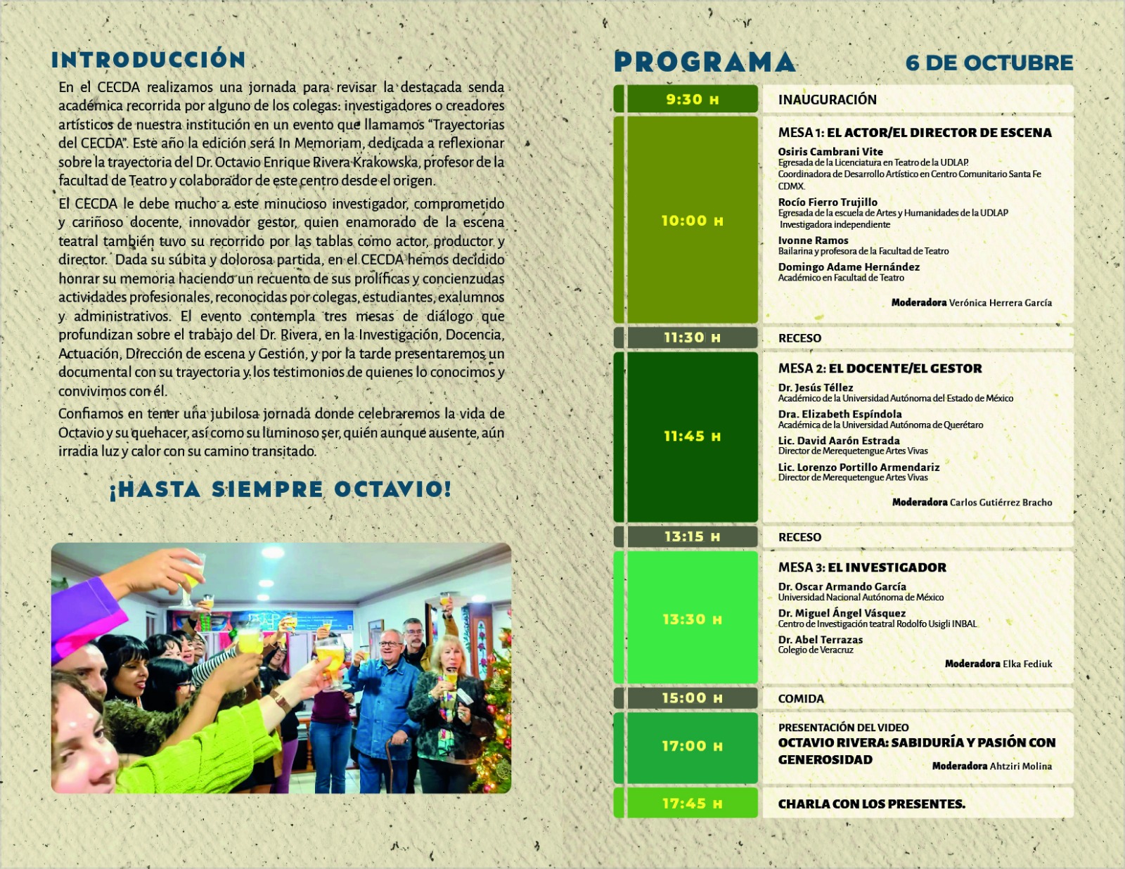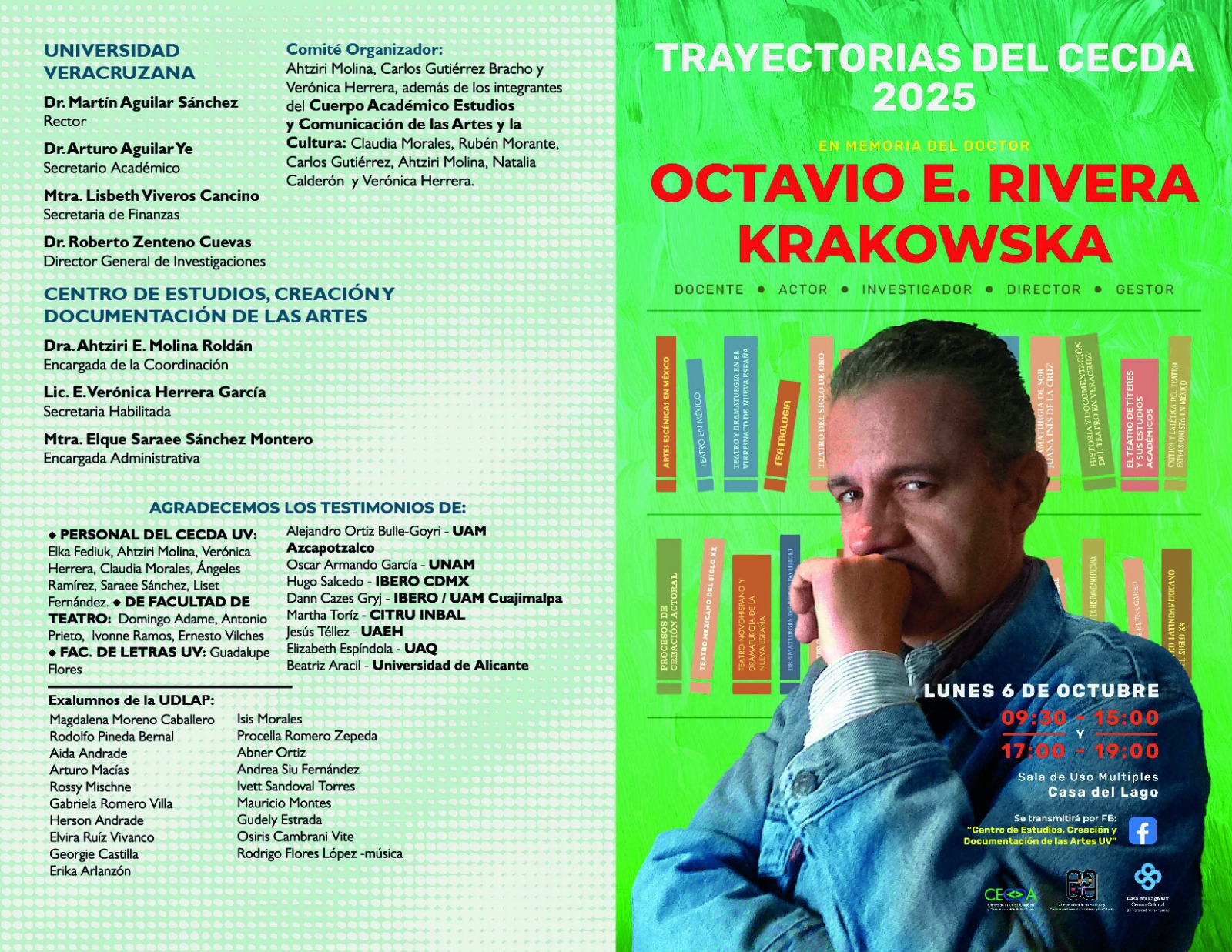 Trayectorias CECDA 2025 homenaje póstumo al Dr. Octavio Rivera K Consulta el programa 06 de octubre 2025 en la Sala de Actividades Complementarias de Casa del Lago UV