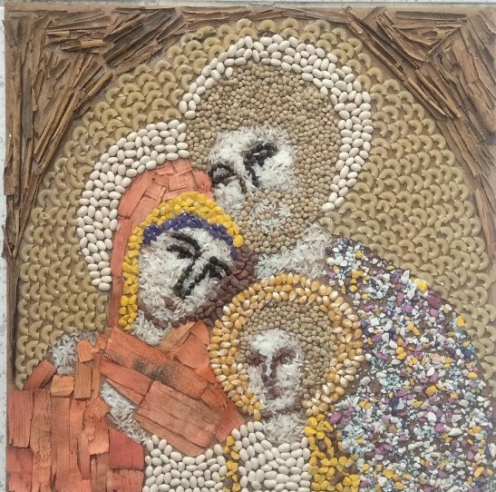 La Sagrada Familia Autor: Cynthia Denisse Aguilar Cervantes Técnica: Semillas Y Piedritas Medidas: 40 X 40 Cm Talleres Libres de Arte Papantla
