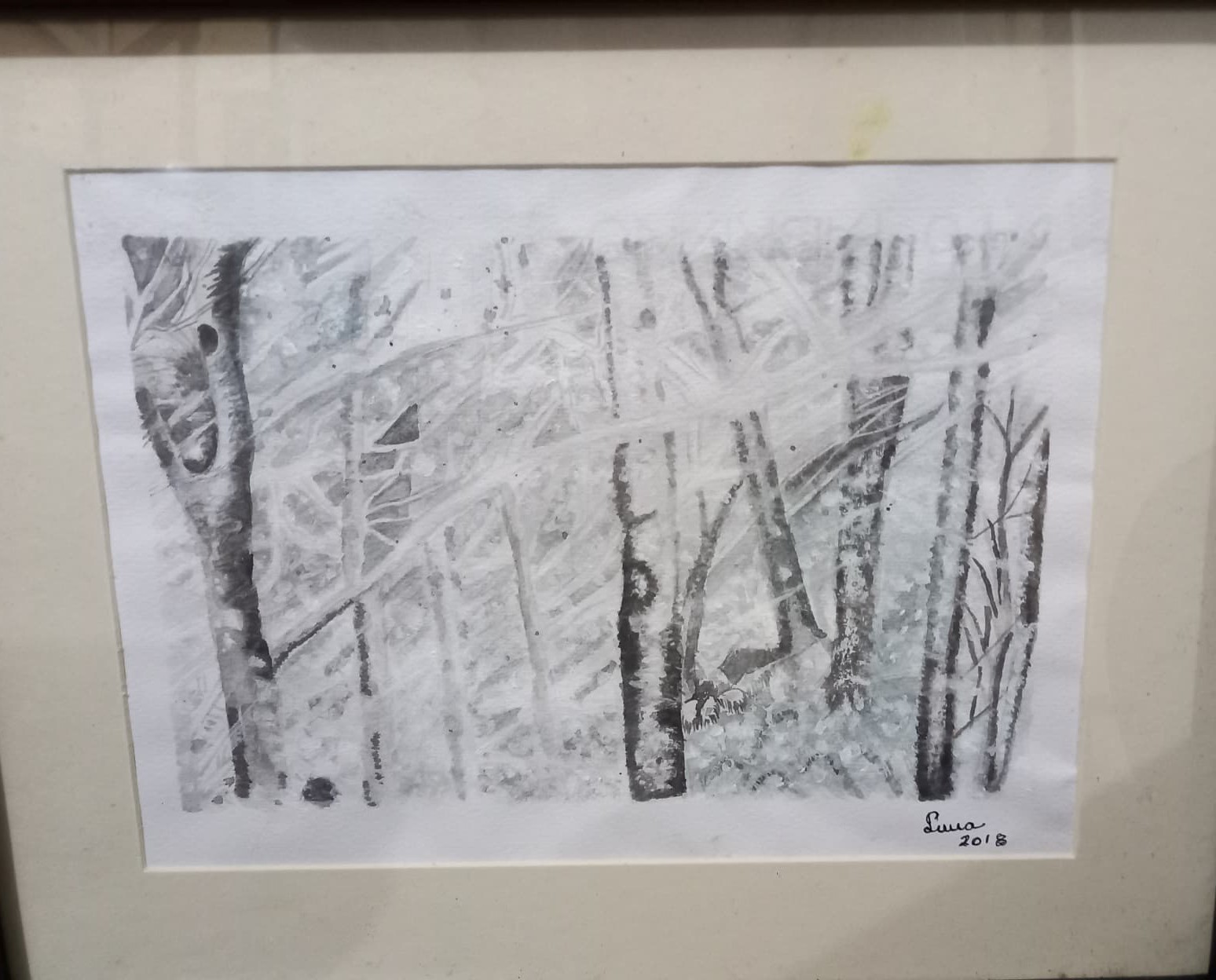 Bosque invernal Autor: Bernarda Lourdes Luna Rodríguez Técnica: Mixta, tinta china y acrílico Medidas: 32 x 26 cm