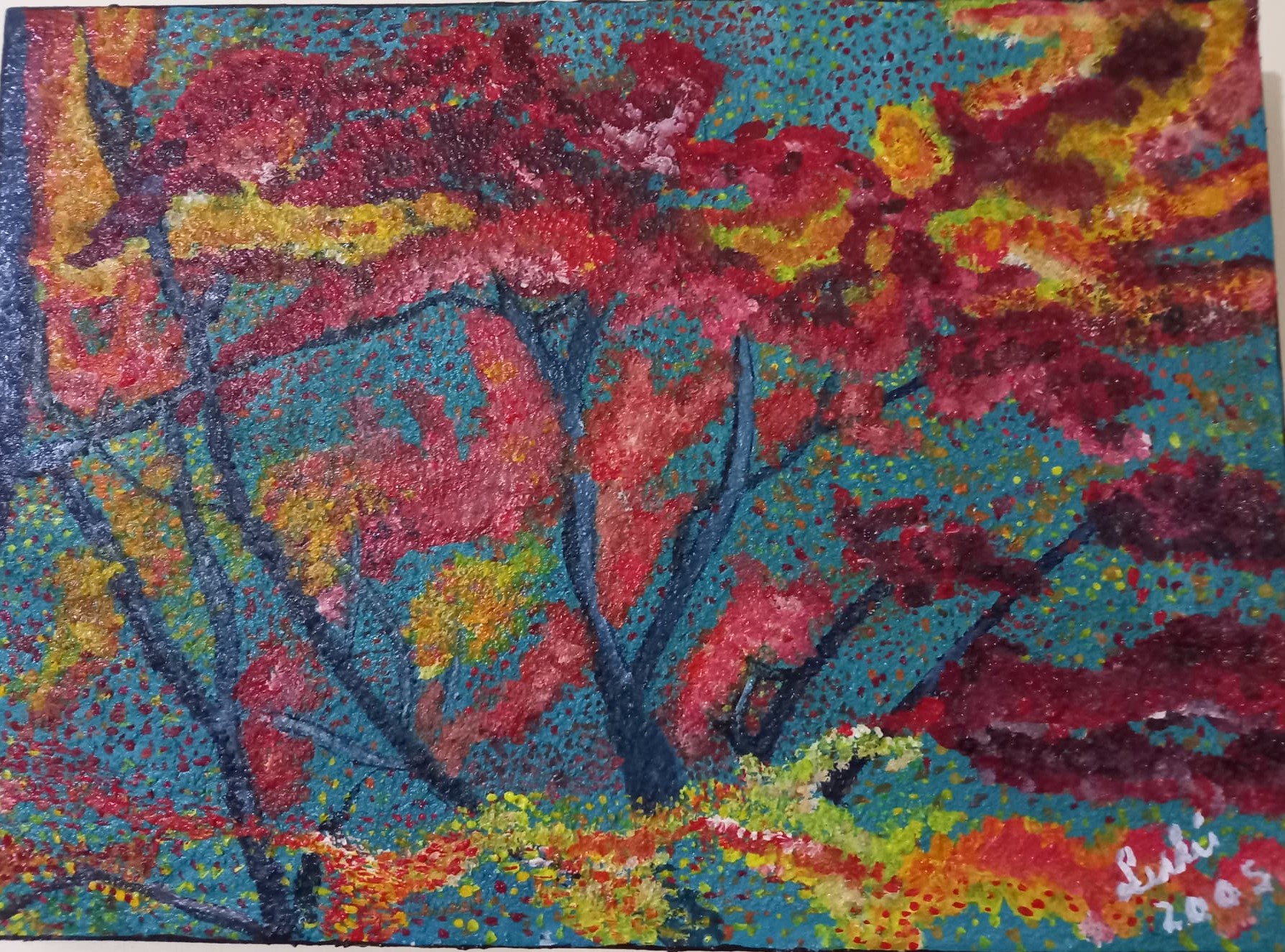 Arboles otoñales Autor: Bernarda Lourdes Luna Rodríguez Técnica: Acrílico sobre base de marmolina