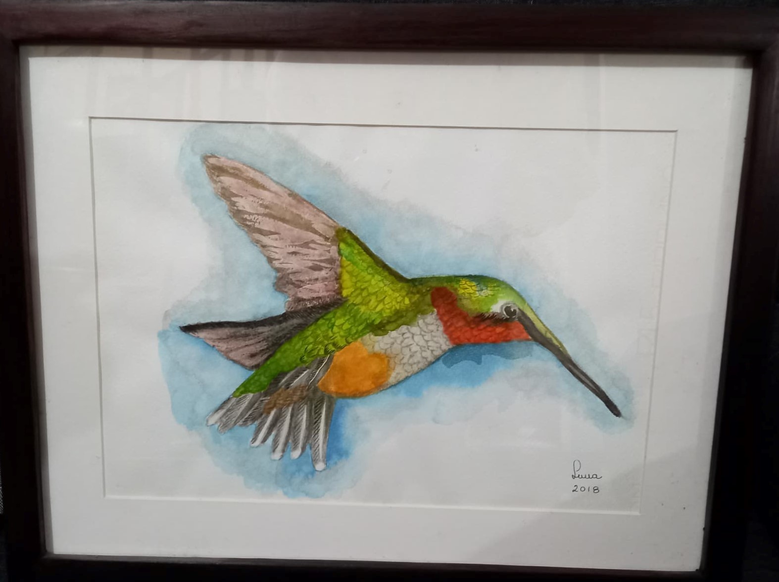 Colibrí Autor: Bernarda Lourdes Luna Rodríguez Técnica: tinta china sobre papel algodón Medidas: 30 x25 cm