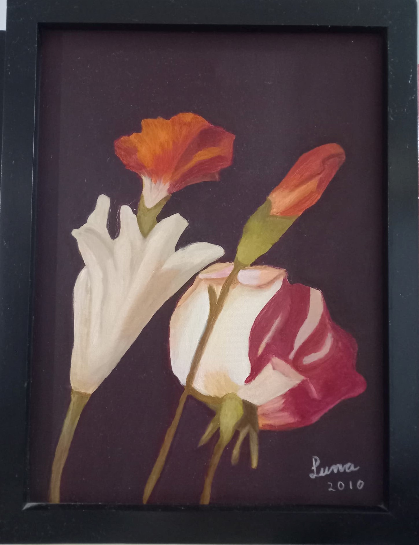 Flores Autor: Bernarda Lourdes Luna Rodríguez Técnica: Óleo sobre lienzo Medidas: 40 x 50 cm