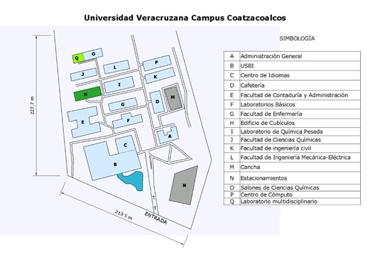 - Figura 1. Mapa de distribución de espacios del campus Coatzacoalcos de la Universidad Veracruzana.