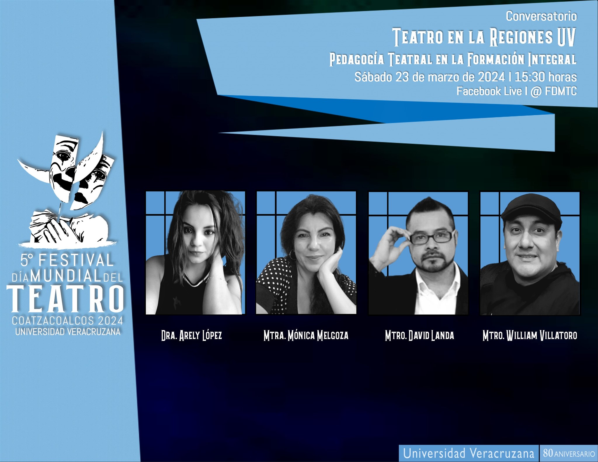 El 5° Festival Día Mundial del Teatro Coatzacoalcos 2024, contempló, eventos con artistas estatales y nacionales de la disciplina de teatro, realizado del 21 al 23 de marzo de 2024. En el que se presentaron puestas en escena y actividades complementarias: talleres, charlas y conversatorios. Con el fin de promover las manifestaciones artísticas y culturales de excelencia a través de nuestra universidad, al ofrecer a la población estudiantil y público en general, una programación de eventos que incluya artistas locales, estatales y nacionales, con la finalidad de fortalecer la creación de público a las artes, así como realizar actividades de promoción en el ámbito de las artes escénicas, con productos culturales de calidad.