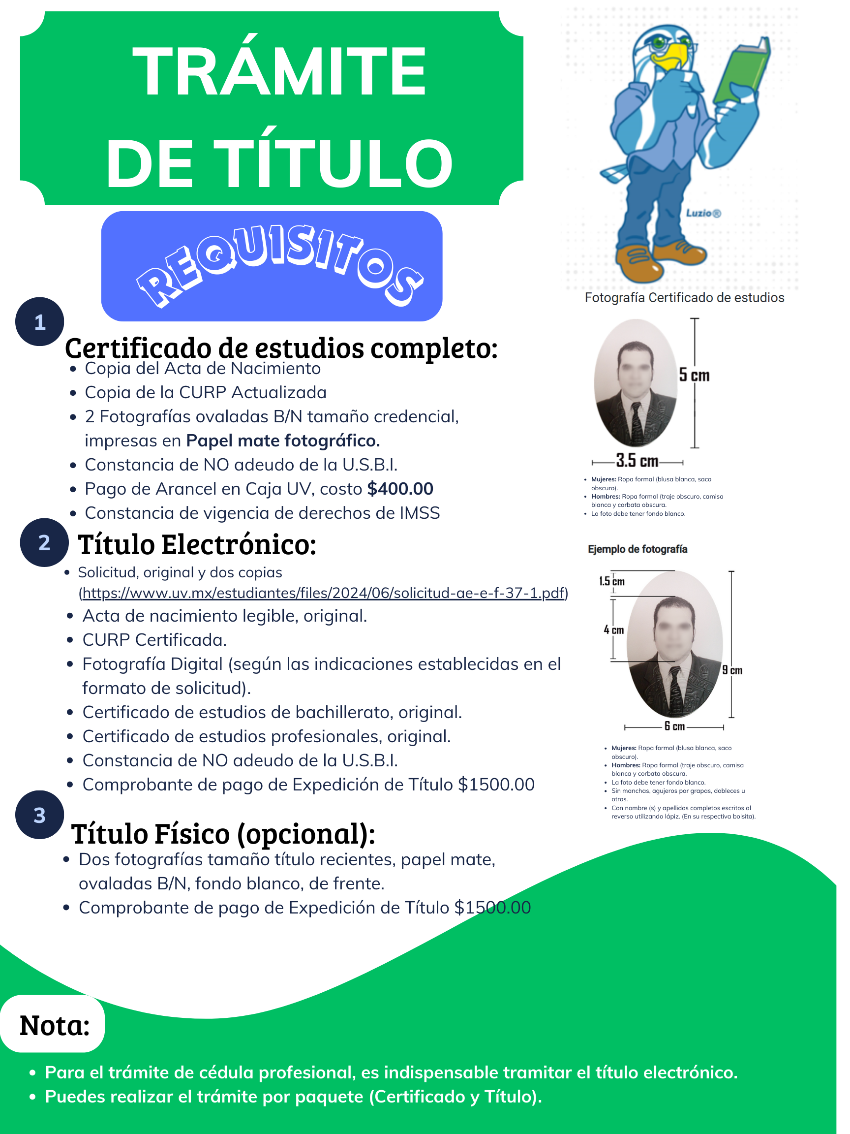 Egreso Constancia de no adeudo en bibliotecas Consulta la infografía y si tienes dudas escribe un correo sb@uv.mx Certificado de estudios completo o incompleto Legalización de Certificados de Estudios Expedición de Título, Diploma y Grado Académico Trámite de Cédula Profesional Requisitos