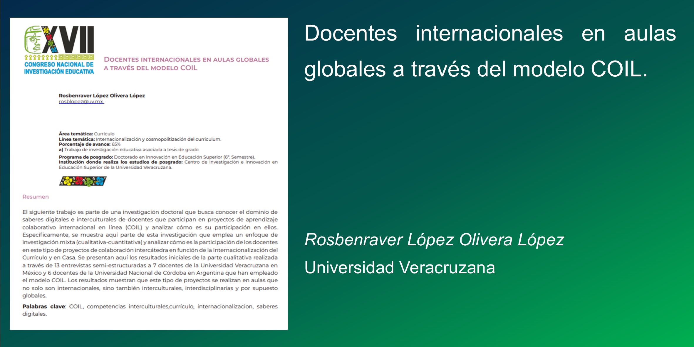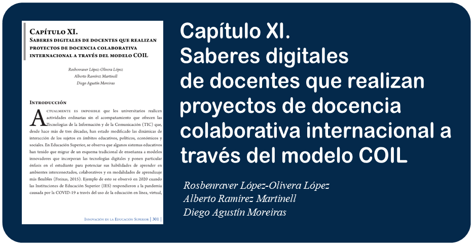 Publicaciones Aprendizaje colaborativo internacional en línea experiencias Competencies in Digitalization An Experiment in an International Course Intervenciones educativas con metodología COIL Retos y Perspectivas de la Internacionalización UV 2017-2021 Aprendizaje del Idioma inglés – Colaboración virtual internacional El uso de las herramientas digitales para la enseñanza en educación superior durante la pandemia por COVID-19: Un estudio piloto. The guide to COIL virtual exchange Hacia la Internacionalización digital en la Educación Superior Experiencias académicas entre profesores de distintas disciplinas. Una práctica internacional Beneficios, inconvenientes y retos de los cursos COIL: las experiencias de los académicos. Collaborative Online International Learning: origen y naturaleza. El aprendizaje colaborativo internacional en línea El Proyecto COIL en su diseño e implementación. Tensiones, logros y desafíos. Experiencias y percepciones de los actores participantes del proyecto COIL: Los saberes digitales durante la pandemia. La movilidad virtual en la educación superior es un oxímoron. Tecnolologías e Innovación en la Práctica Educativa. Docencia Virtual, El reto de las universidades latinoamericanas. Docentes internacionales en aulas globales a través del modelo COIL La dimensión internacional del trabajo académico en la Universidad Veracruzana: análisis cuantitativo. Hacia una internacionalización solidaria de la educación superior en América Latina: consideraciones desde México Towards a supportive internationalization of higher education in Latin America: considerations from México. Internacionalización solidaria en la Universidad Veracruzana. Educación Global Capítulo X. La internacionalización como innovación de Educación Superior Capítulo XI. Saberes digitales de docentes que realizan proyectos de docencia colaborativa internacional a través del modelo COIL
