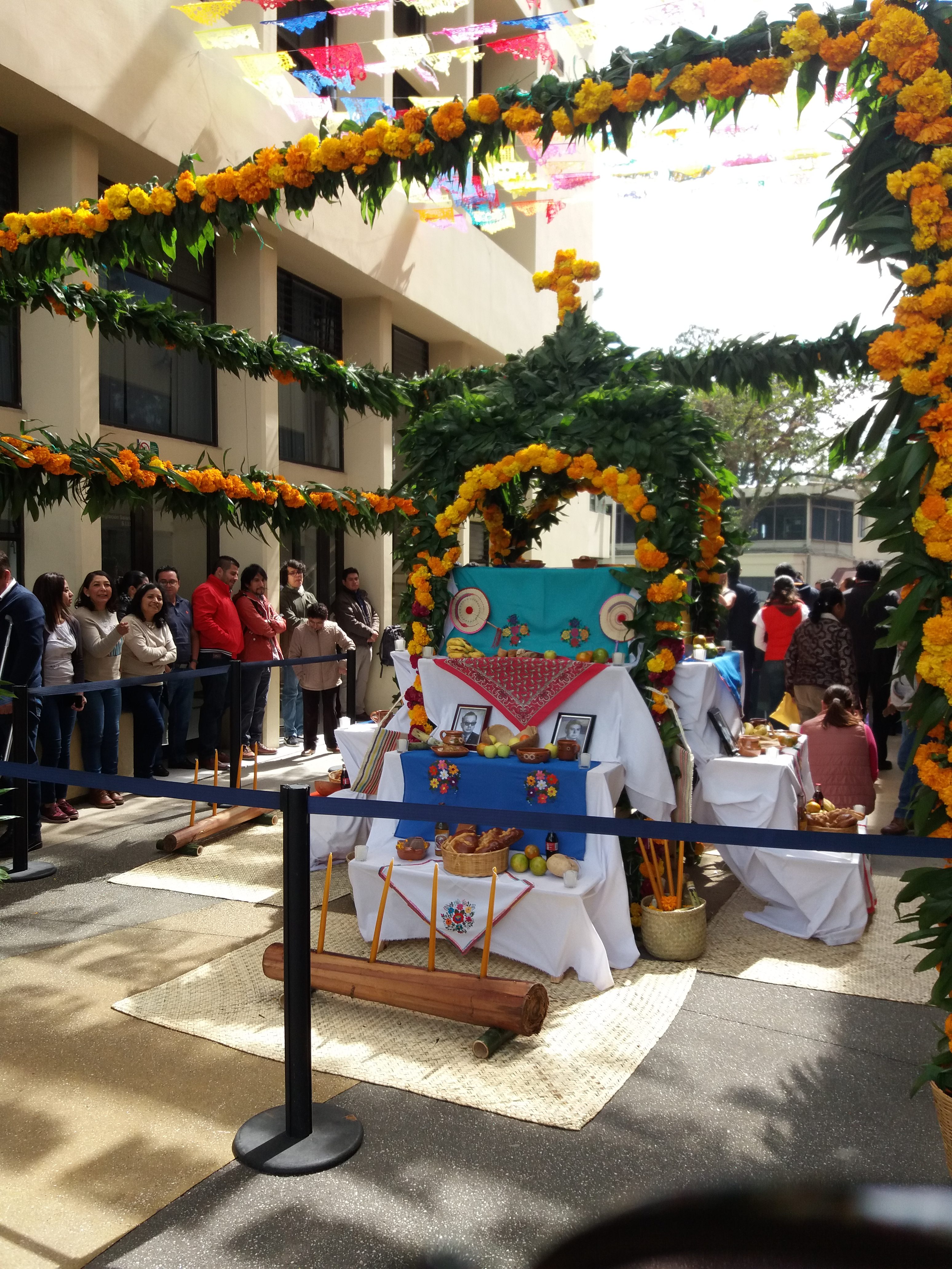En la explanada de la Unidad Central, la SAF coordinó el montaje del Altar de muertos huasteco-totonaco.