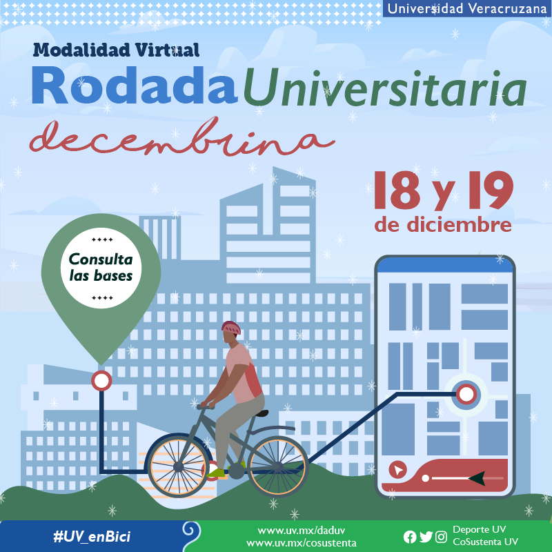 C o n v o c a n a la Comunidad Universitaria y a la población de la zona metropolitana de Xalapa a participar en la Rodada Universitaria Decembrina en su modalidad virtual que se regirá bajo las siguientes bases: