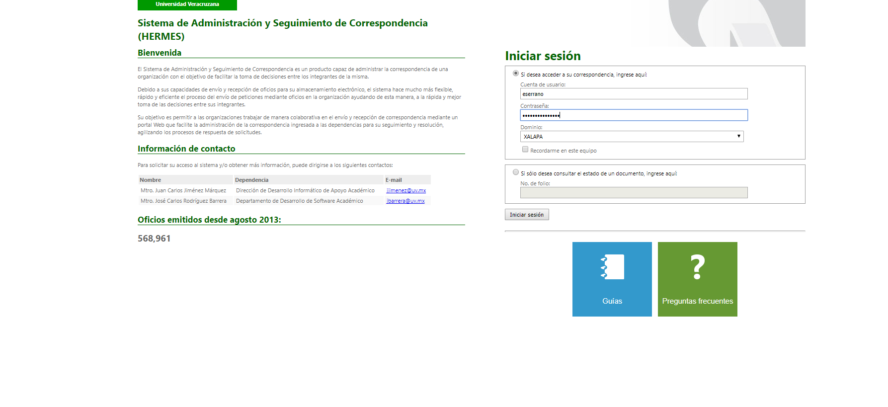La Universidad Veracruzana, como institución, utiliza una gran cantidad de insumos de oficina y genera una gran cantidad de residuos de papel, derivado de sus actividades sustantivas y administrativas. Ante esta situación, surge el Sistema de Seguimiento y Correspondencia Digital HERMES como una alternativa al envío de documentación oficial dentro de la UV.