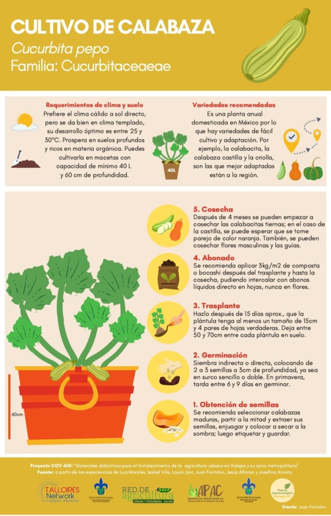 En ésta sección presentamos una serie de materiales que han sido elaborados con muchas experiencias. Las infografías que encontarrán, en algunas de ellas, están traducidas a lenguas originarias, agradecemos el apoyo de la UVI. El producto: el texto y las imágenes es de elaboración colectiva, el grupo coordinado por Daniela Aldazaba y Laura Jarri, se dieron a la tarea de organizar: talleres, webinarios, encuentros con las personas que cultivan alimentos, a partir de los eventos, se recogieron experiencias sobre los días que tardan en germinar las semillas, los principales problemas fitosanitarios y las estrategias que hacen para evitar su daño, sobrela forma de obtener semillas y en sintesis, toda esta información, se puso, de manera gráfica, en las infografías que ustedes encontrarán en ésta sección. Son pues, el esfuerzo colectivo de muchas personas que cultivan sus alimentos todos los días, para que el lenguaje, la información sea adecuada a nuestra bioregión, no es una copia, no es un material que se bajó de internet, es la construcción colectiva, la experiencia y la práctica de cada una de éstas infografías.