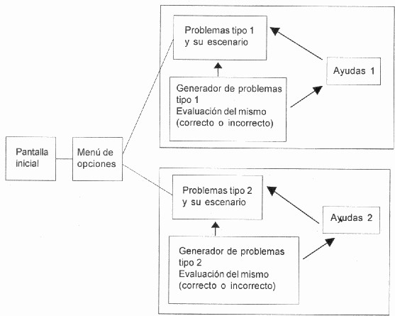 Tomemos como ejemplo lo que se ha clasificado como software educativo de problemas tipo (Laborda 1986; González, 1999). En el diagrama se muestra un esquema general de este tipo de software.