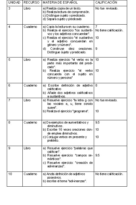 Puede verse que tanto en el libro de Español como en su cuaderno, el niño realiza siempre el trabajo indicado por la maestra, y aunque hay trabajo realizado correctamente que no es revisado, muestra su disposición al trabajo. Generalmente responde bien a los ejercicios del libro y, por lo tanto, manifiesta comprensión de los contenidos. Esto confirma que para él es indispensable la organización del trabajo en el aula, las aclaraciones, las sugerencias y las advertencias porque le brindan directrices. Además del individual, el trabajo en grupo contribuye a las actividades de aprendizaje. Estas condiciones son las que muestran un efecto muy importante en la realización del trabajo escolar cotidiano del niño.