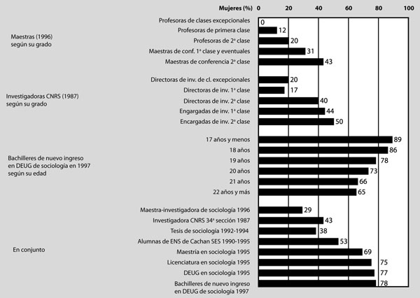 Gráfica 5. El lugar de las mujeres en la sociología académica francesa.