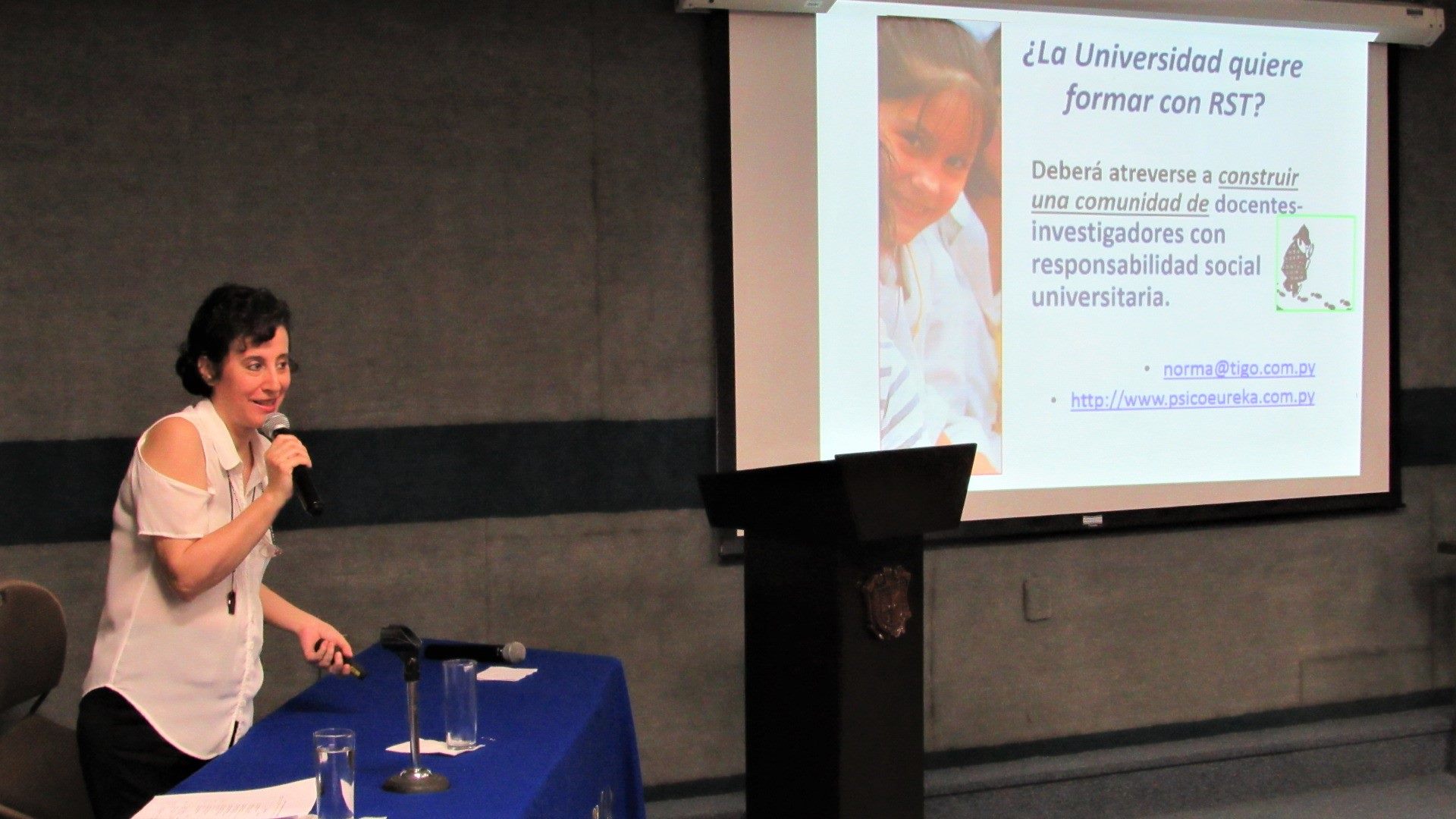 Invitada, Dra. Norma Coppari de Vera, Investigadora de la Universidad Católica de Asunción, Paraguay. Ponencia «Educación superior con RST/RSU: cómo prepararnos para el desafío»