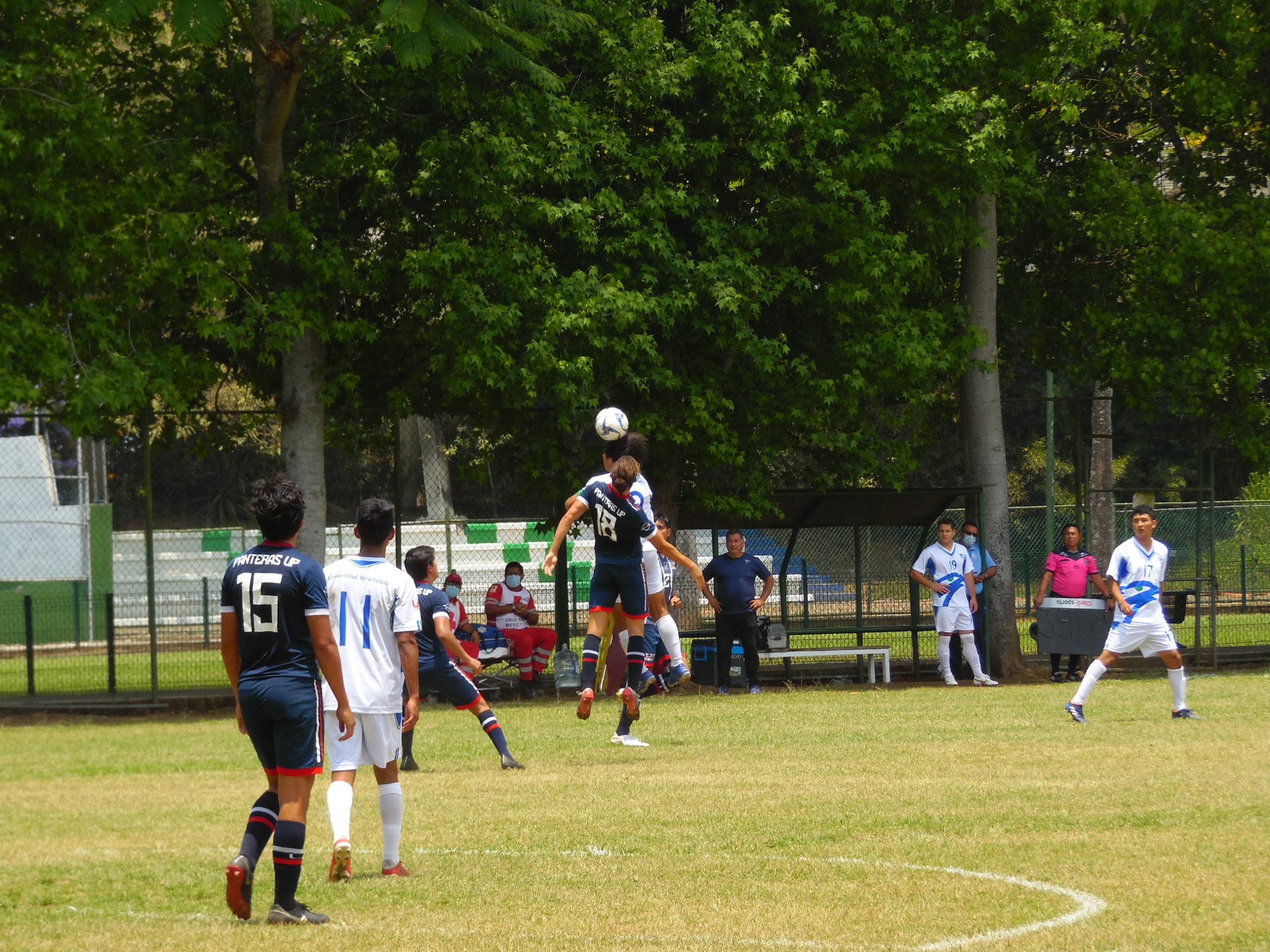 Xalapa, Equez. Ver. 25 de abril del 2022. Panteras de la Universidad Panamericana de la Ciudad de México, derrotaron por la mínima diferencia 1-0 a los Halcones de la Universidad Veracruzana, dentro de la última fecha de la primera vuelta del Campeonato Universitario de Futbol, la Telmex-Telcel, celebrado en la cancha uno de la Unidad Deportiva Universitaria.