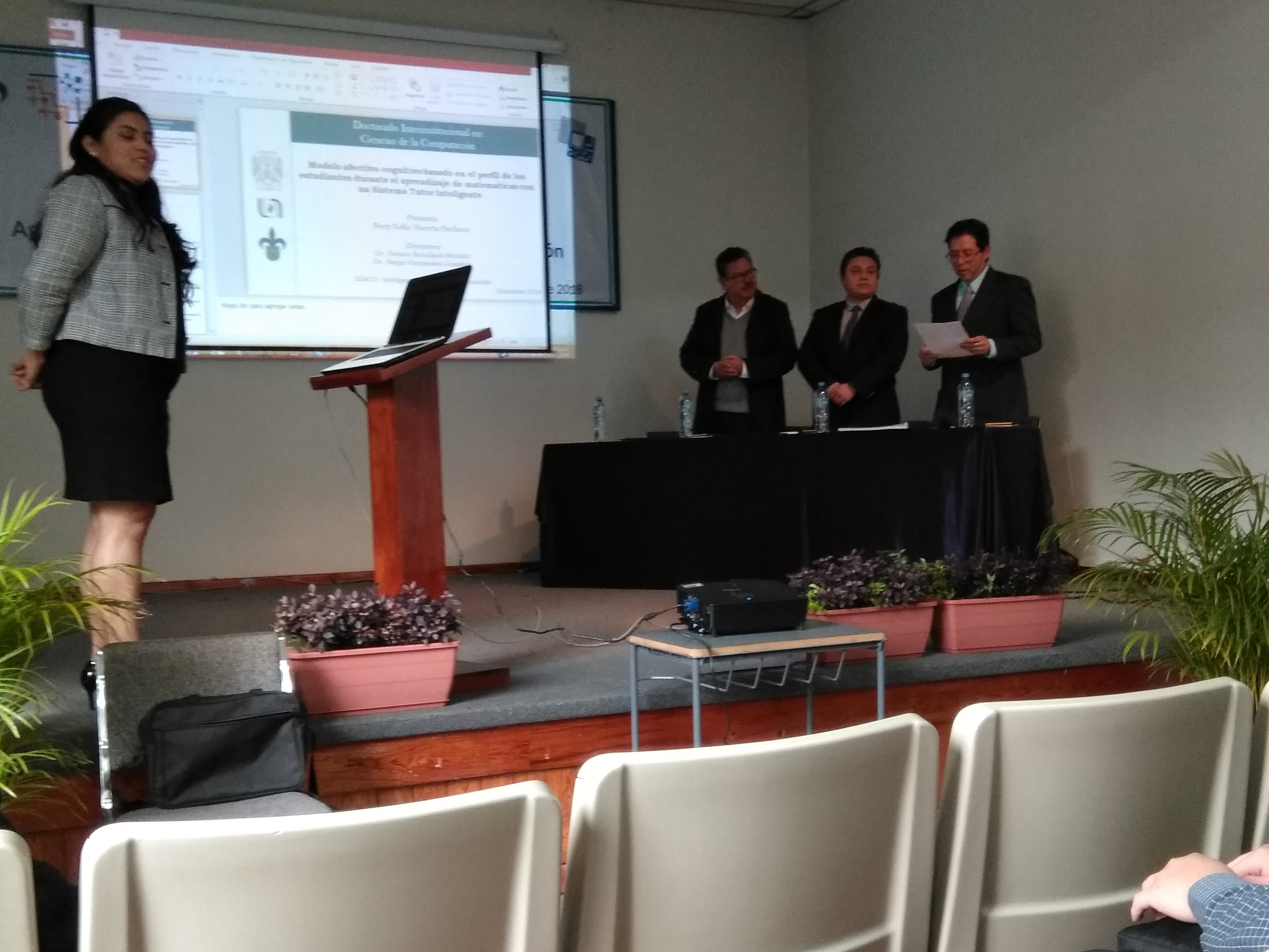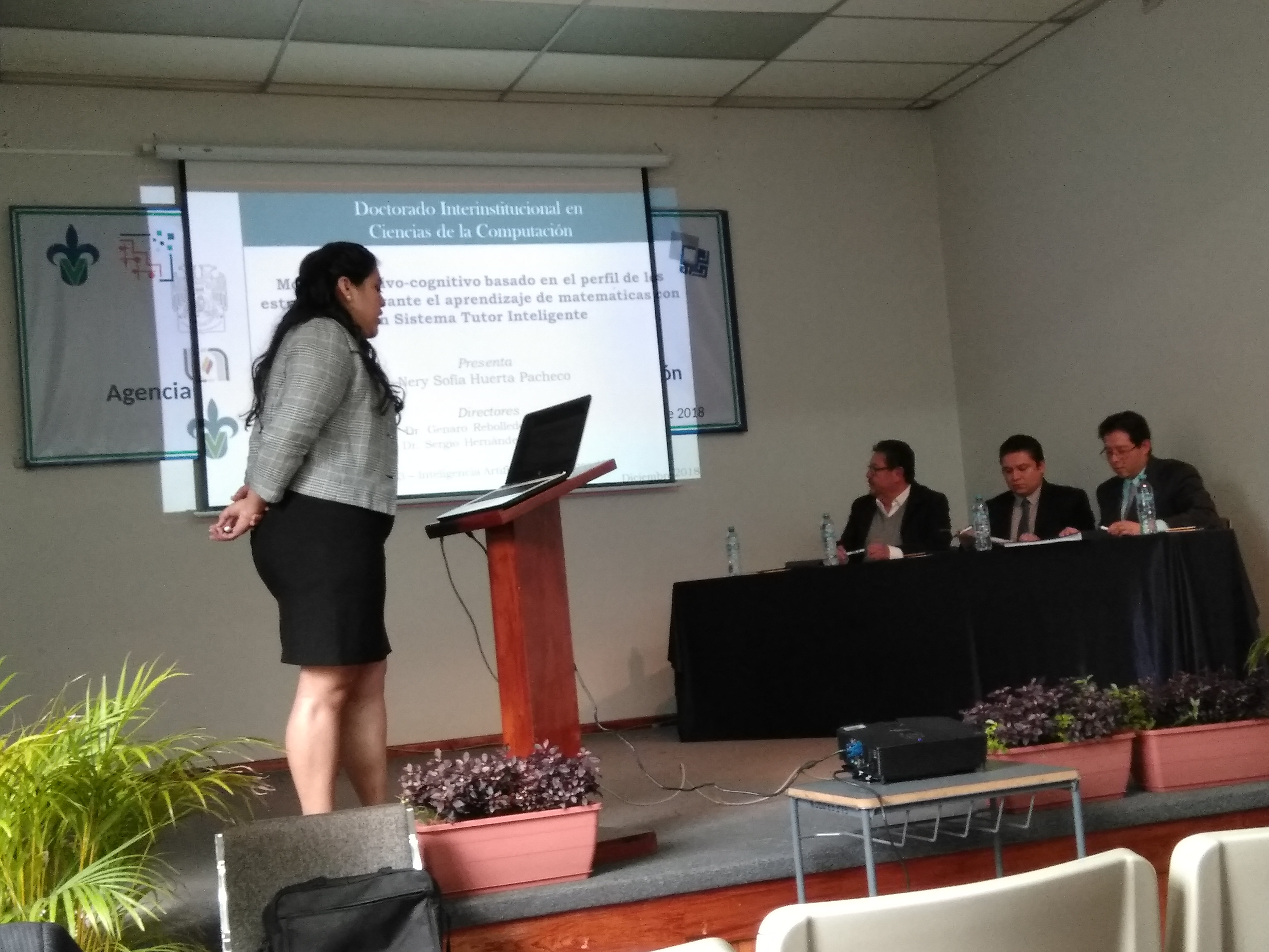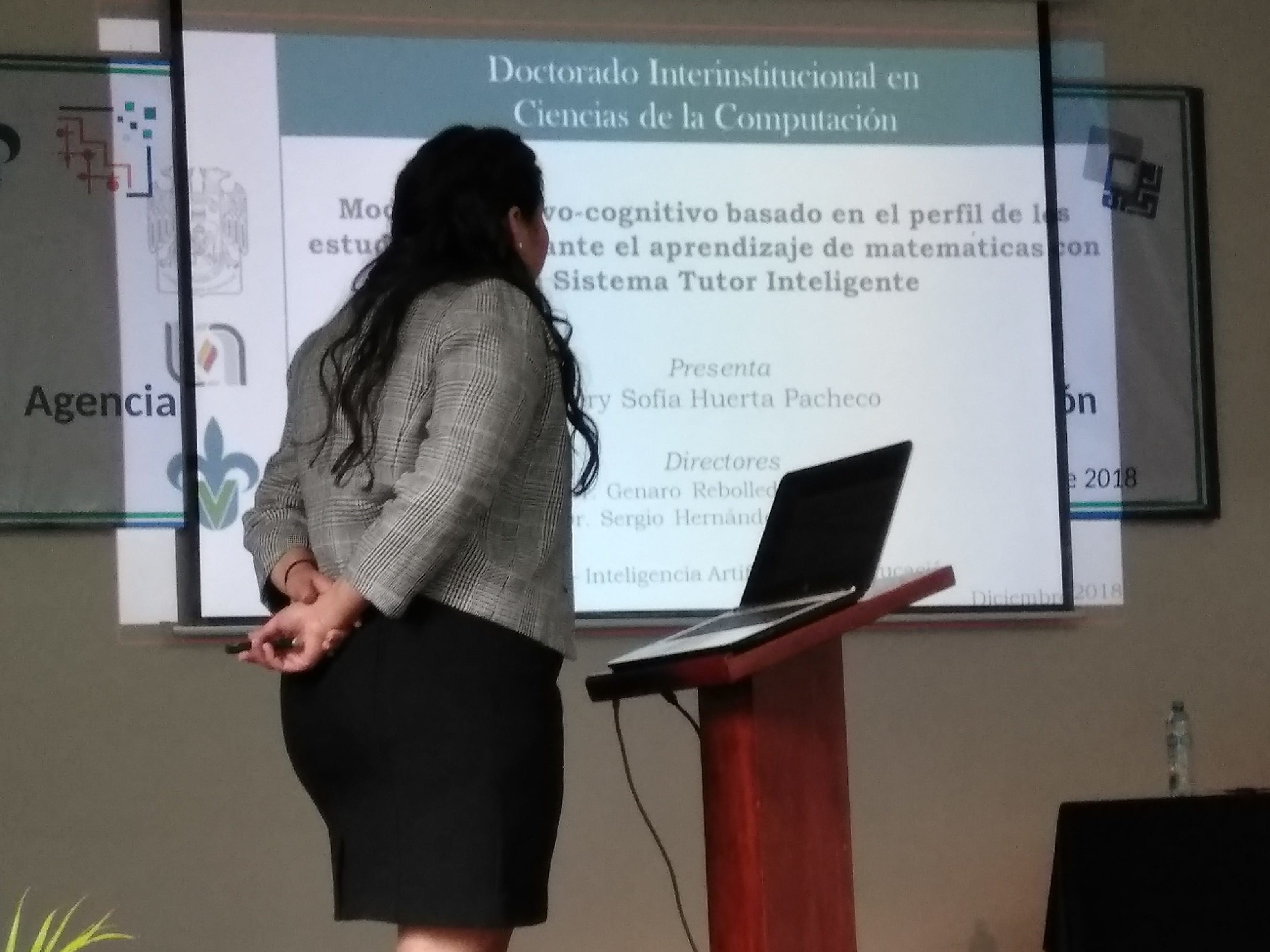 El pasado 17 de Diciembre del 2018 a las 14:00 hrs en el auditorio de la FEI. se llevo a cabo la presentación del examen profesional de Nery Sofia Huerta Pacheco estudiante del Doctorado en Ciencias de la Computación titulado «Modelo afectivo-cognitivo basado en el perfil de los estudiantes durante el aprendizaje de matemáticas con un Sistema Tutor Inteligente» y con ello obtener el grado de Doctora en Ciencias de la Computación.