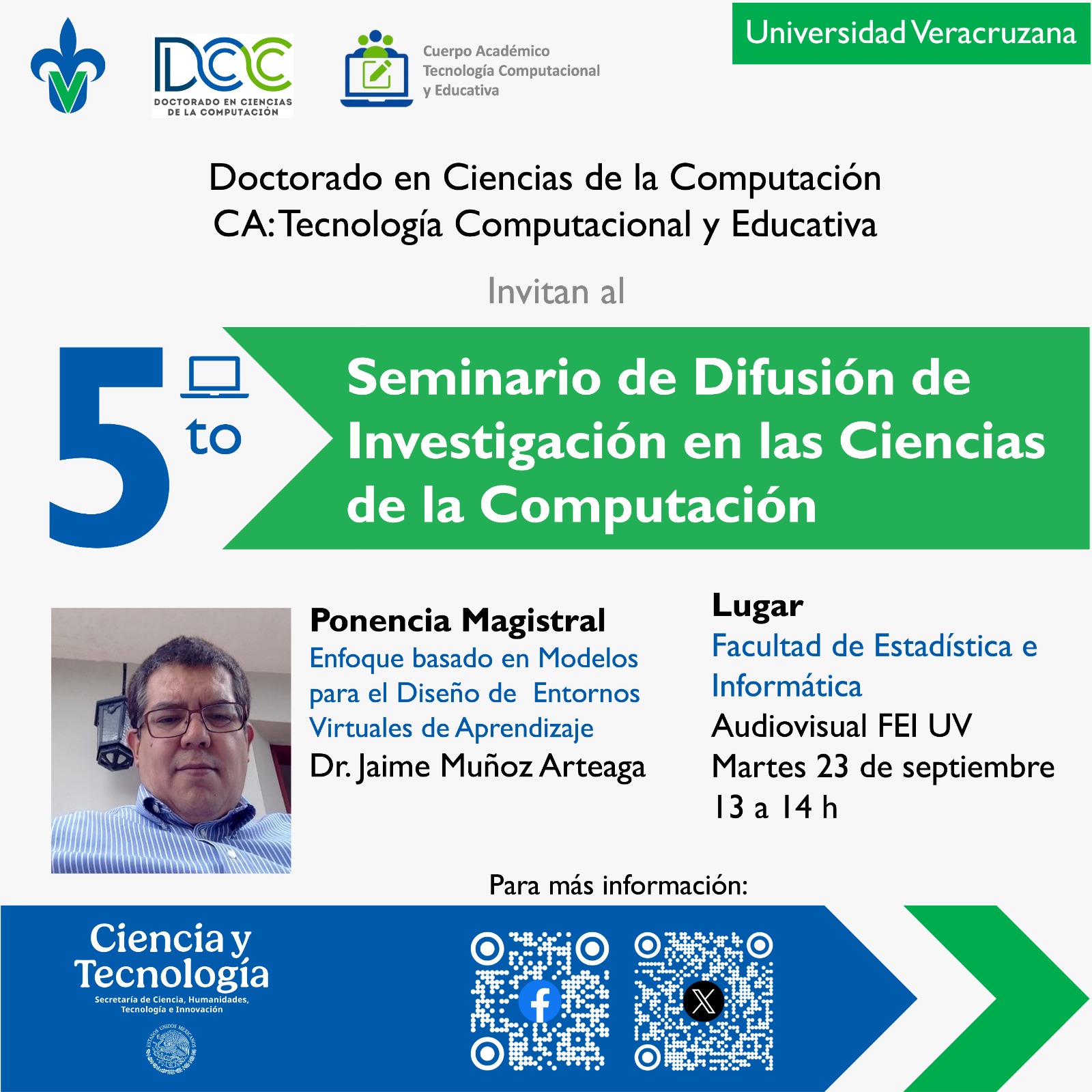 Ponencia a cargo del Dr. Jaime Muñoz Arteaga como adscripción (UAA,EPAI), titulada «Enfoque basado en Modelos para el Diseño de Entornos Virtuales de Aprendizaje», martes 23 de septiembre, Audiovisual de la FEI-UV, 13:00 hrs.