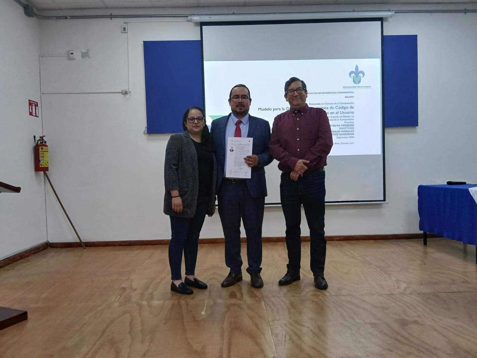 El pasado 12 de septiembre de 2025, a las 11:00 horas, en el Auditorio FEI UV, se llevó a cabo la presentación del examen profesional de Pedro Omar Silva Vásquez, estudiante del Doctorado en Ciencias de la Computación. Durante el acto, se expuso su trabajo titulado: “Modelo para la Generación Automática de Código de Juegos Serios Centrados en el Usuario”, con el cual obtuvo el grado de Doctor en Ciencias de la Computación.