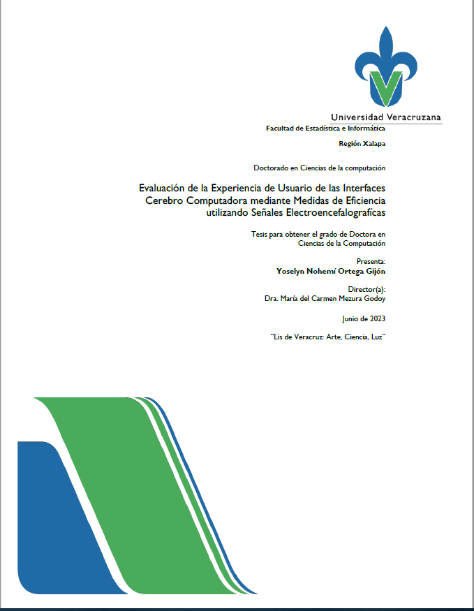 La tesis lleva por título: «Evaluación de la Experiencia de Uusario de las Interfaces Cerebro Computadora mediante Medidas de Eficiencia utilizando Señales Electroencefalográficas«, teniendo como directora la Dra. María del Carmen Mezura Godoy.