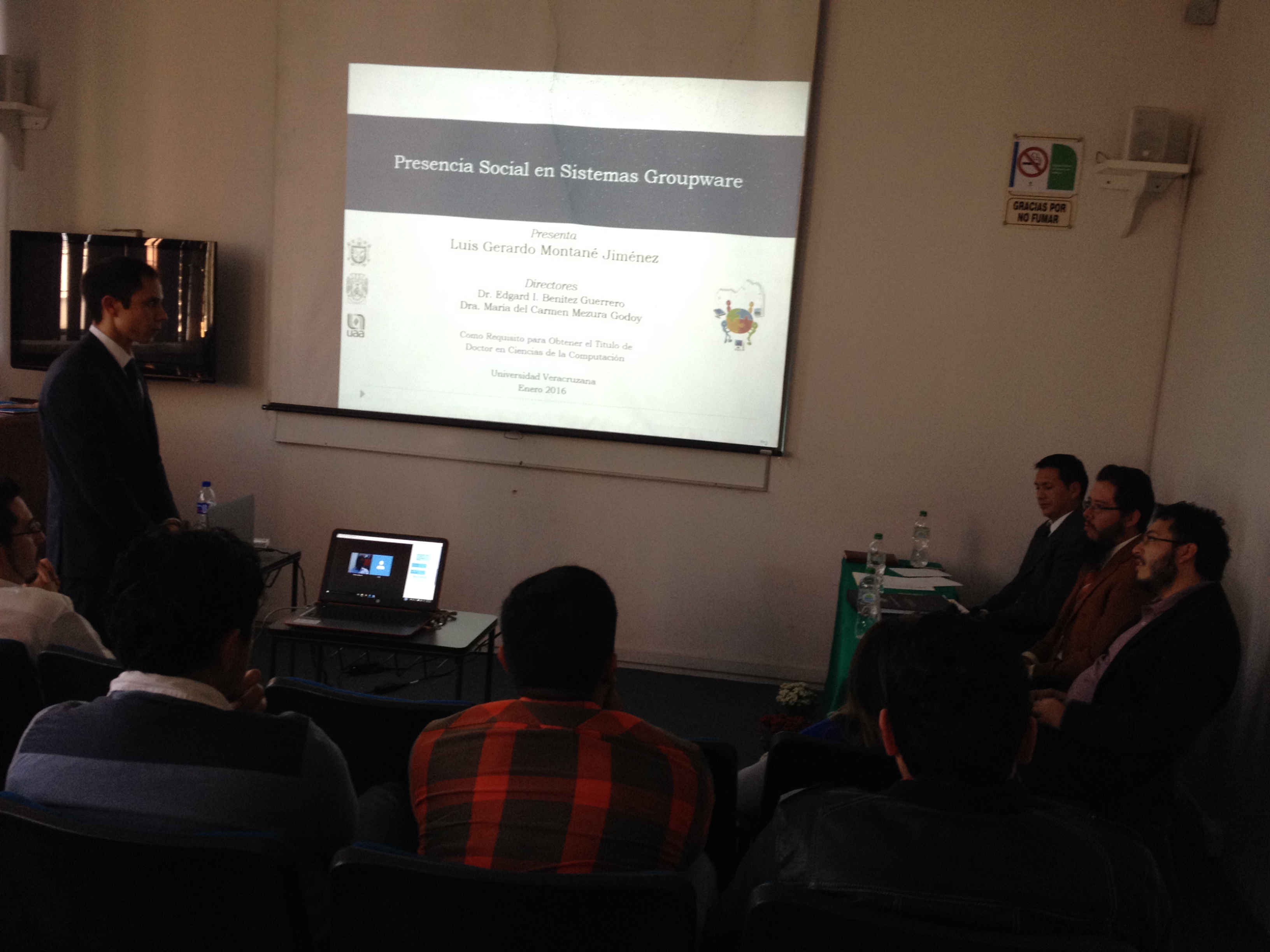 Presentación de Examen de Grado- Luis Gerardo Montané Jiménez Trabajo de tesis intitulado “Presencia Social en Sistemas Groupware”, que se llevó a cabo el día 25 de Enero de 2016 a las 16:00hrs en la sala audiovisual de la FEI.