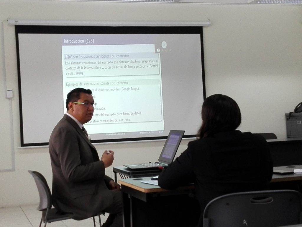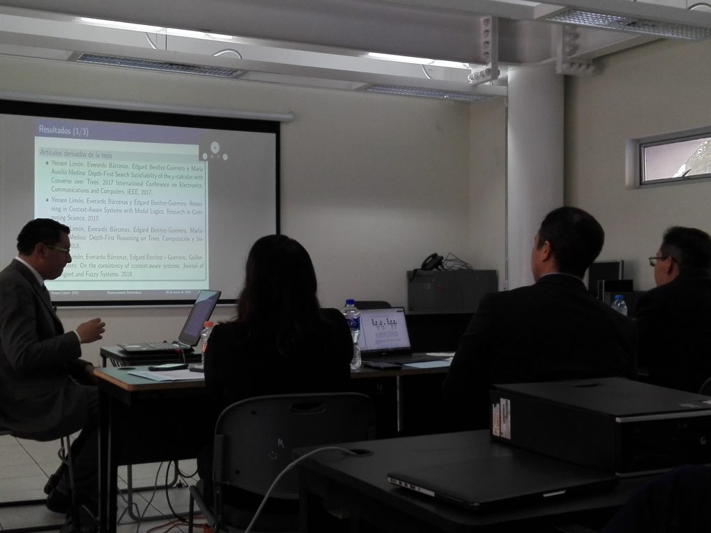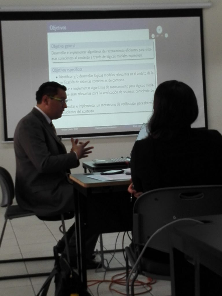 Trabajo de tesis titulado “Razonamiento automático en sistemas conscientes del contexto a través de lógicas modales.” , 30 de Enero de 2020 a las 12:00 hrs, en el aula TC de la FEI.