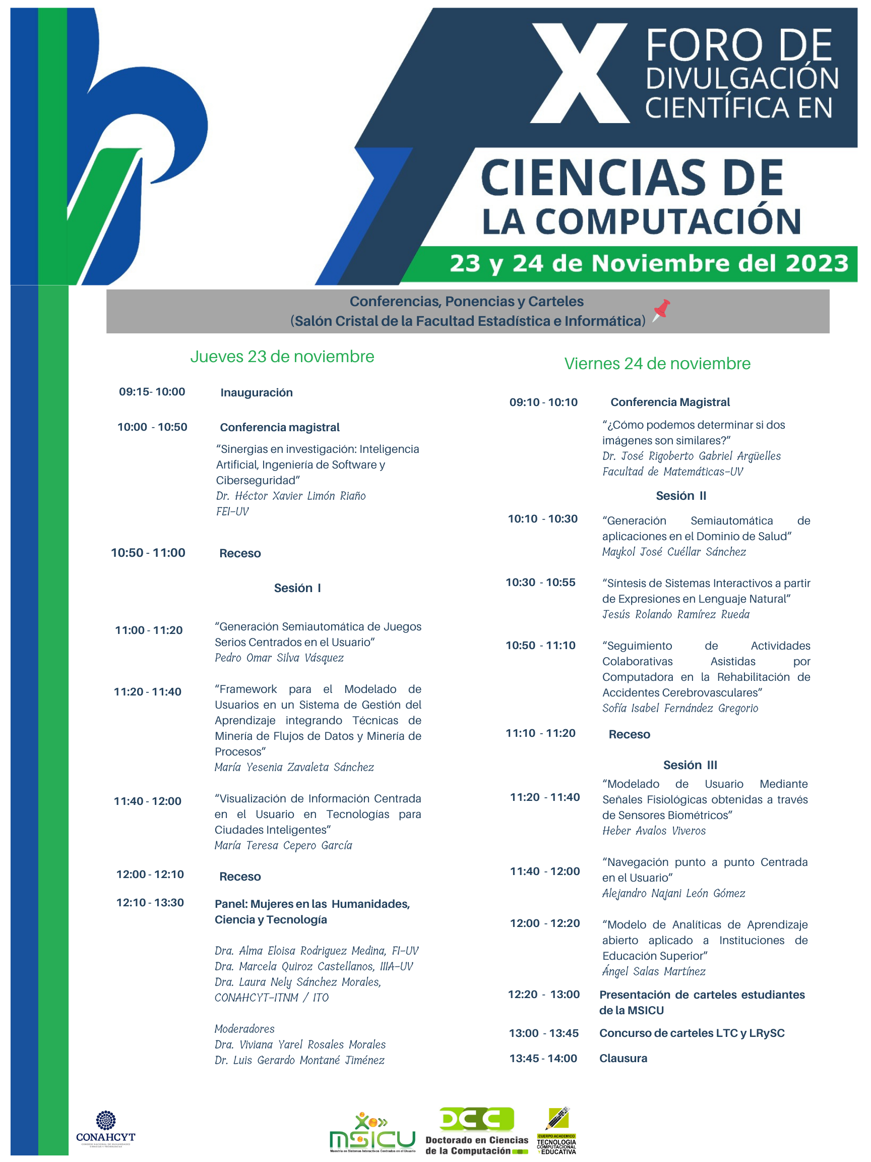 El Doctorado en Ciencias de la Computación–DCC, tiene el honor de invitarlos al X Foro de Divulgación Científica en Ciencias de la Computación, que tendrá lugar los días 23 y 24 de Noviembre del año en curso en el Salón Cristal de la Facultad de Estadística e Informática.